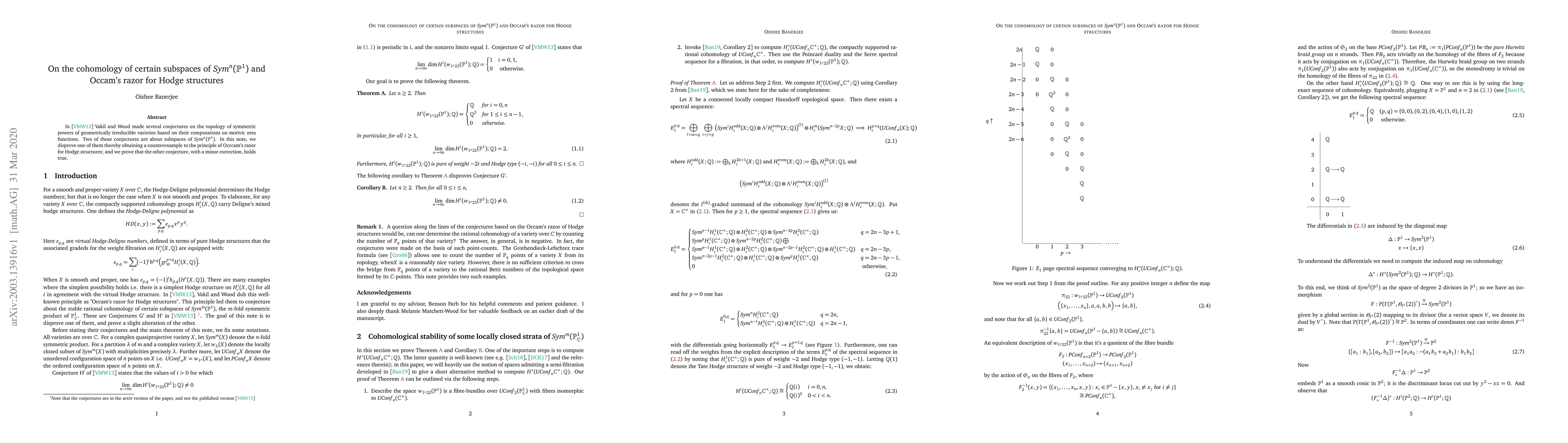 In \cite{Vakil13} Vakil and Wood made several conjectures on the topology of symmetric powers of geometrically irreducible varieties based on their computations on motivic zeta functions. Two of those conjectures are about subspaces of $\Sym^n(\P^1)$. In this note, we disprove one of them thereby obtaining a counterexample to the principle of Occcam's razor for Hodge structures; and we prove that the other conjecture, with a minor correction, holds true.
