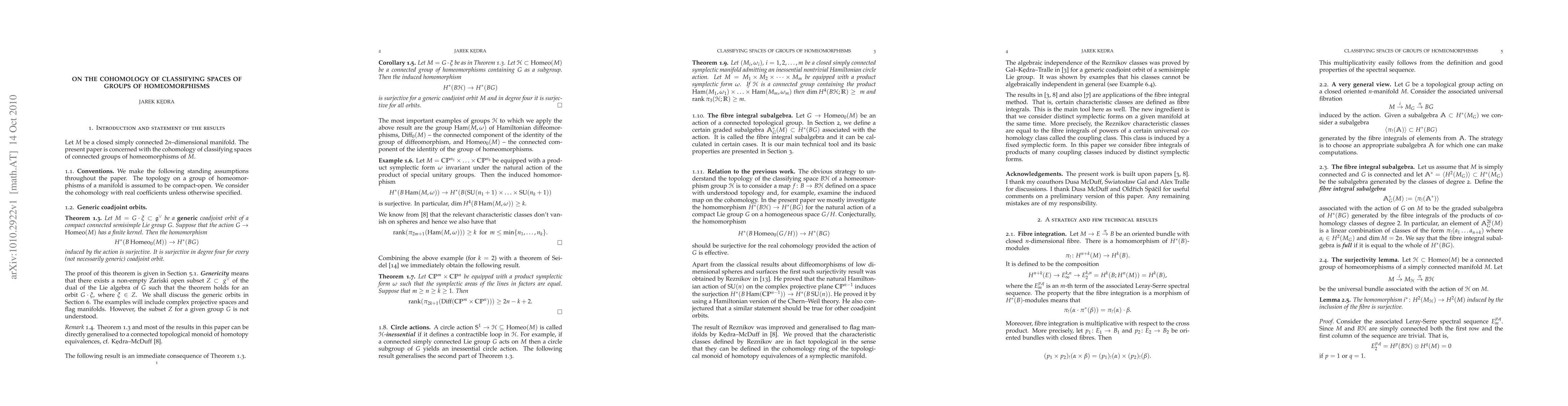 This paper investigates the cohomology of classifying spaces associated with connected groups of homeomorphisms acting on a closed, simply connected 2n-dimensional manifold M. The focus is on understanding the topological and algebraic properties of these classifying spaces.