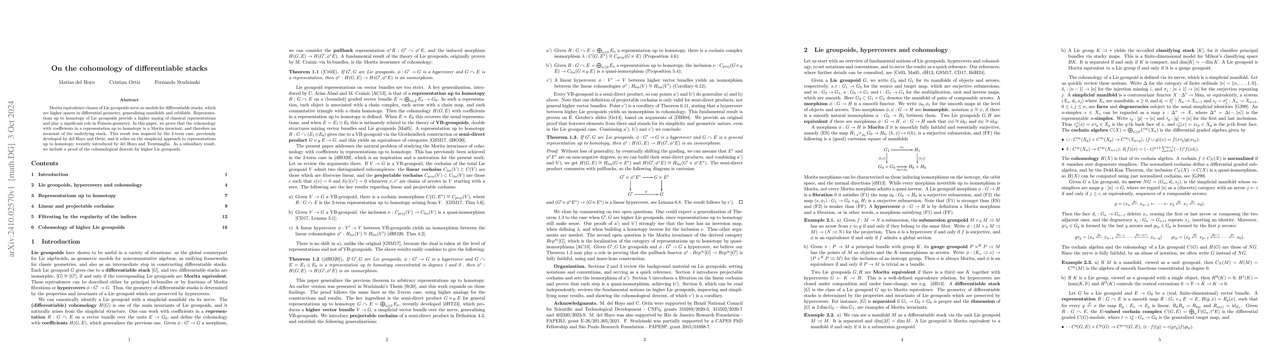 This paper demonstrates that the cohomology of differentiable stacks, modeled by Morita equivalence classes of Lie groupoids, is invariant under Morita equivalence, thereby serving as a stack invariant. It builds on the simplicial approach to representations up to homotopy, proving cohomological descent for higher Lie groupoids as a secondary result.