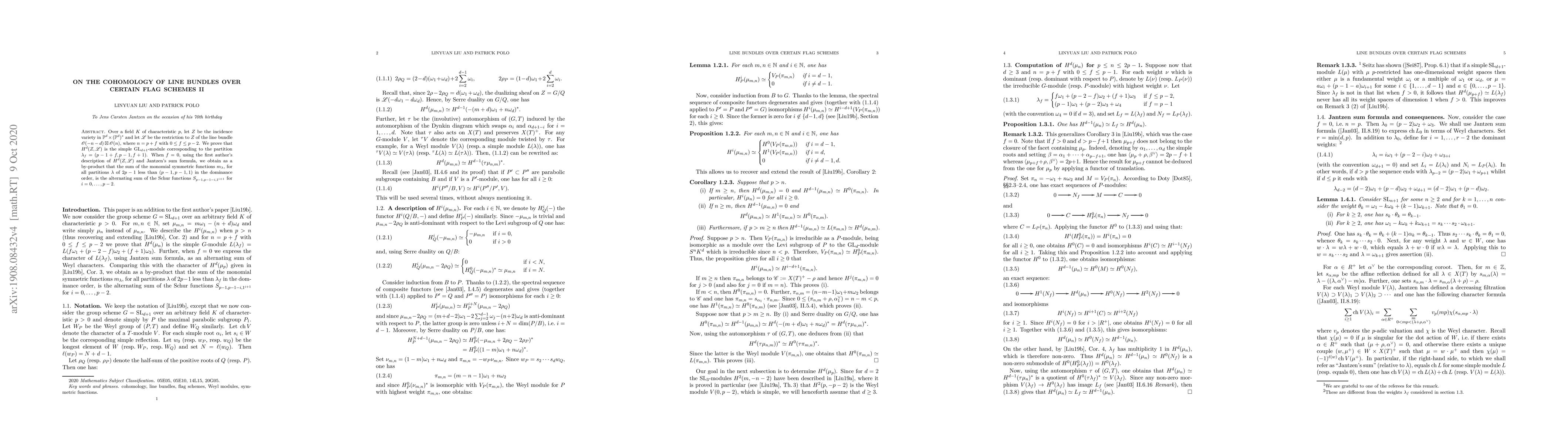 Over a field $K$ of characteristic $p$, let $Z$ be the incidence variety in $\mathbb{P}^d \times (\mathbb{P}^d)^*$ and let $\mathcal{L}$ be the restriction to $Z$ of the line bundle $\mathcal{O}(-n-d) \boxtimes \mathcal{O}(n)$, where $n = p+f$ with $0 \leq f \leq p-2$. We prove that $H^d(Z,\mathcal{L})$ is the simple $\operatorname{GL}_{d+1}$-module corresponding to the partition $\lambda_0 = (p-1+f,p-1,f+1)$. When $f= 0$, using the first author's description of $H^d(Z,\mathcal{L})$ and Jantzen's sum formula, we obtain as a by-product that the sum of the monomial symmetric functions $m_\lambda$, for all partitions $\lambda$ of $2p-1$ less than $(p-1,p-1,1)$ in the dominance order, is the alternating sum of the Schur functions $S_{p-1,p-1-i,1^{i+1}}$ for $i=0,\dots,p-2$.