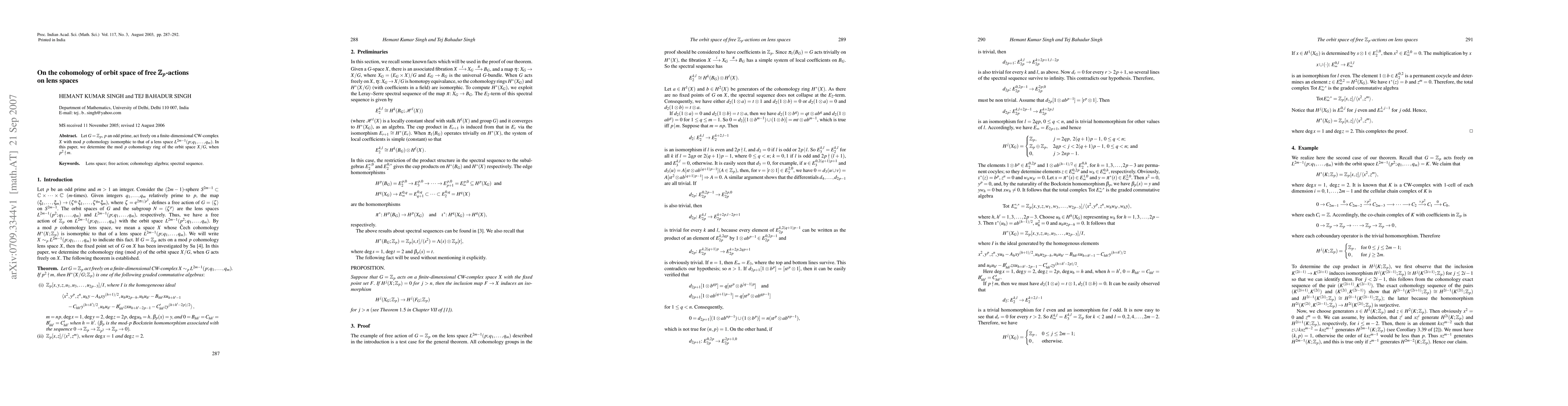 This research paper determines the mod p cohomology ring of the orbit space X/G for free Z_p-actions on lens spaces, where p^2 does not divide m.