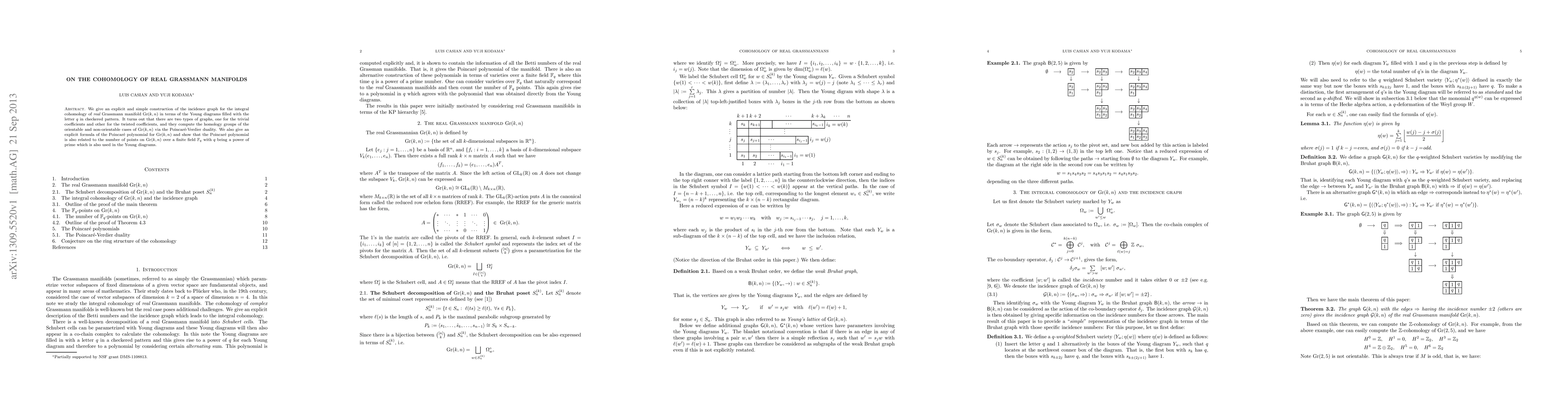 We give an explicit and simple construction of the incidence graph for the integral cohomology of real Grassmann manifold Gr(k,n) in terms of the Young diagrams filled with the letter q in checkered pattern. It turns out that there are two types of graphs, one for the trivial coefficients and other for the twisted coefficients, and they compute the homology groups of the orientable and non-orientable cases of Gr(k,n) via the Poincar\'e-Verdier duality. We also give an explicit formula of the Poincar\'e polynomial for Gr(k,n) and show that the Poincar\'e polynomial is also related to the number of points on Gr(k,n) over a finite field {F}_q with q being a power of prime which is also used in the Young diagrams.