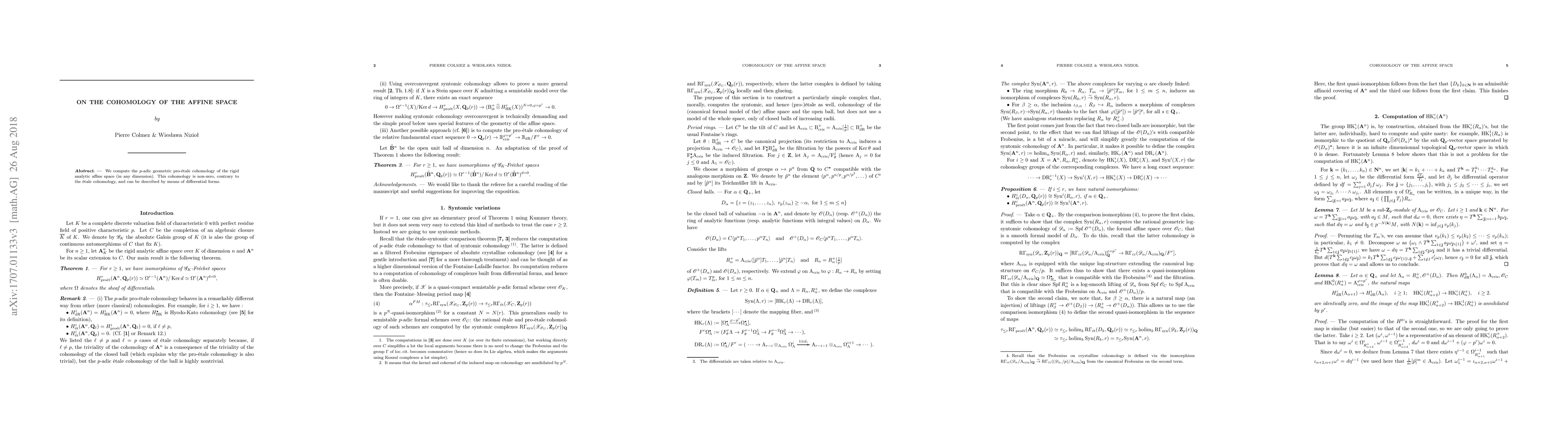 We compute the p-adic geometric pro-\'etale cohomology of the affine space (in any dimension). This cohomogy is non-zero, contrary to the \'etale cohomology, and can be described by means of differential forms.