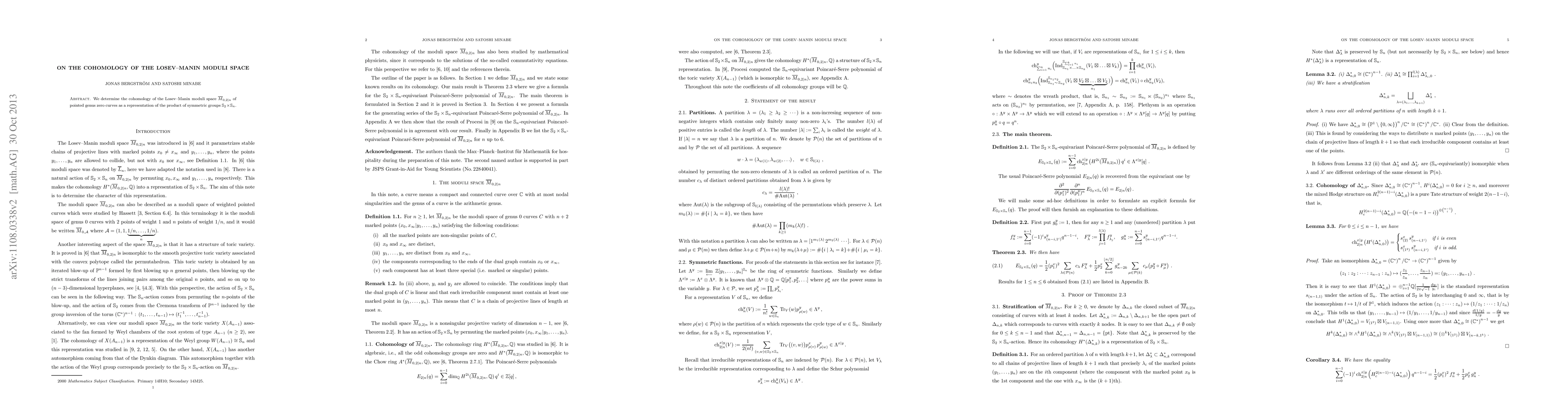 This research paper identifies the cohomology structure of the Losev-Manin moduli space for pointed genus zero curves, describing it as a representation of symmetric group products.
