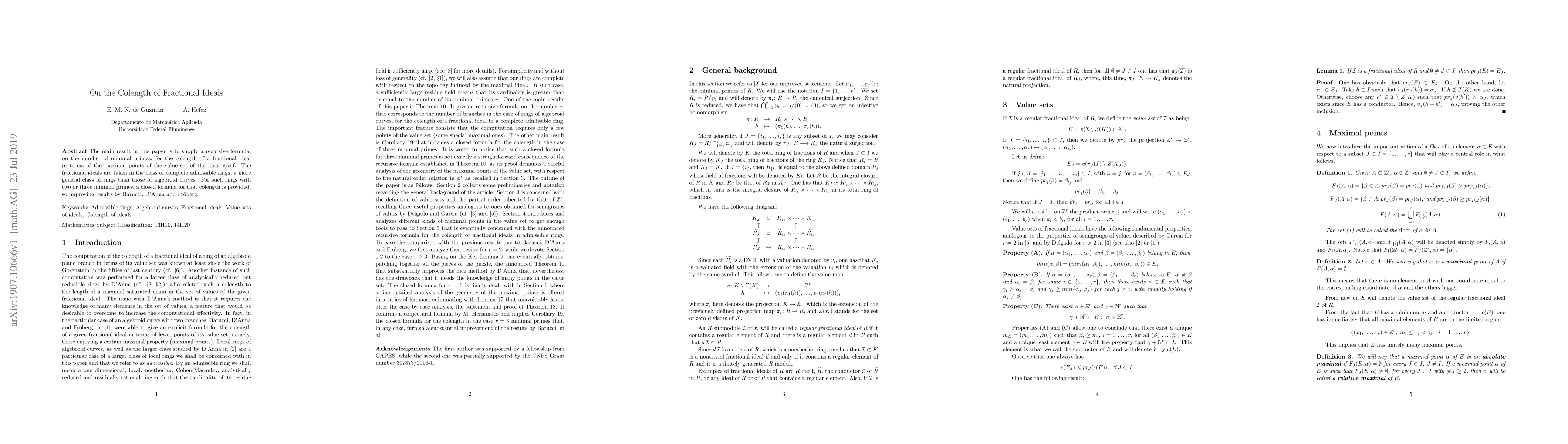 The main result in this paper is to supply a recursive formula, on the number of minimal primes, for the colength of a fractional ideal in terms of the maximal points of the value set of the ideal itself. The fractional ideals are taken in the class of complete admissible rings, a more general class of rings than those of algebroid curves. For such rings with two or three minimal primes, a closed formula for that colength is provided, so improving results by Barucci, D'Anna and Fr\"oberg.