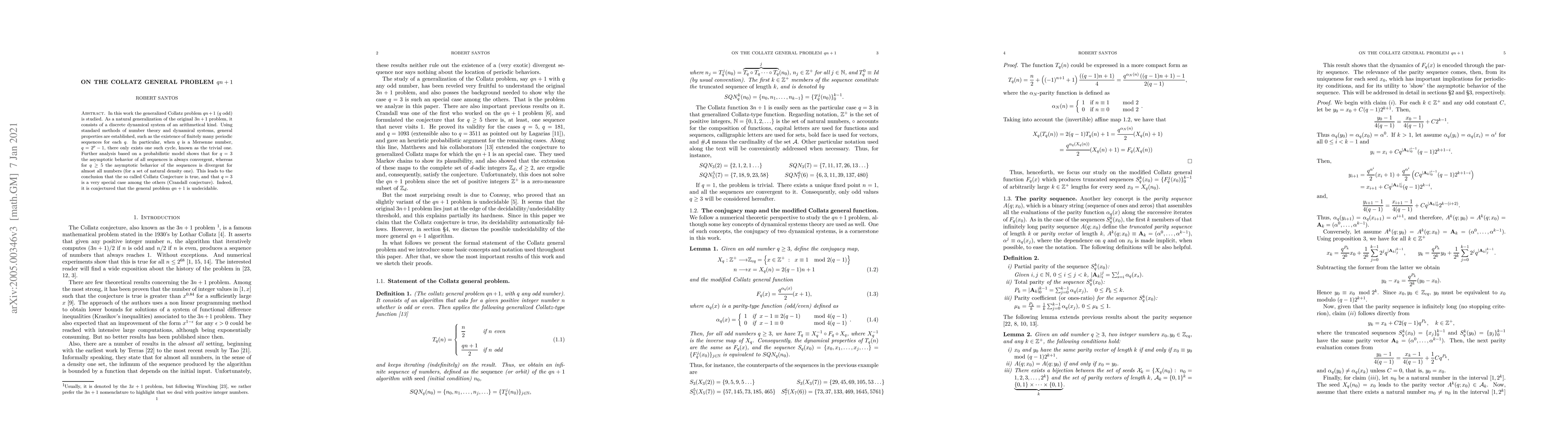 The Collatz problem $qn+1$ is studied for odd $q$, showing that cycles exist only for Mersenne numbers, with $q=3$ being a special case where sequences converge asymptotically and the conjecture is true.