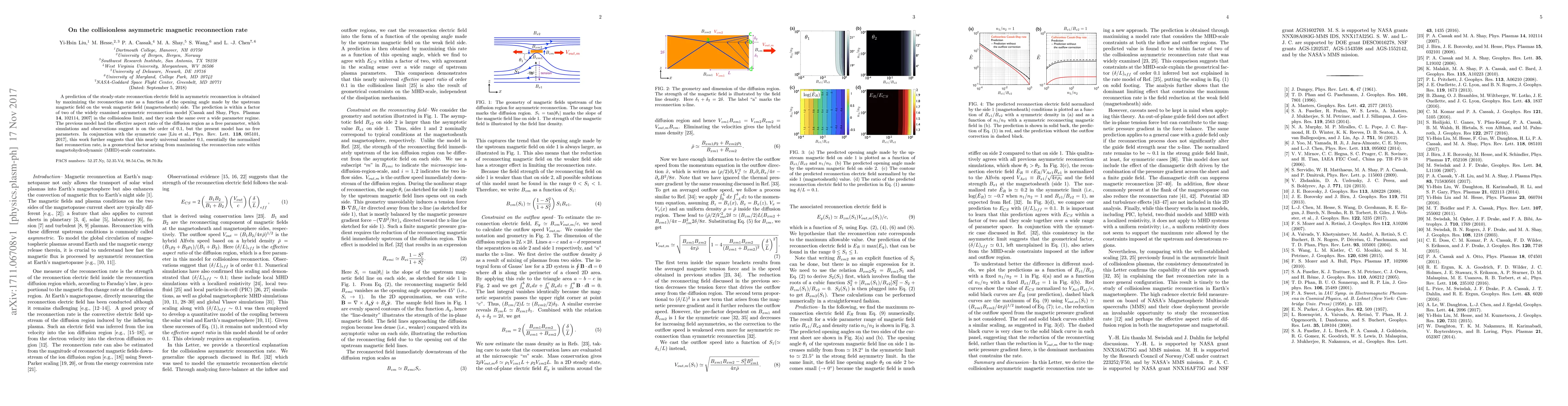 This paper predicts the steady-state reconnection electric field in asymmetric magnetic reconnection by maximizing the reconnection rate, yielding results within a factor of two of a widely-used model. Unlike previous models, it does not require free parameters and suggests a nearly universal reconnection rate of 0.1 as a geometrical factor derived from MHD-scale constraints.