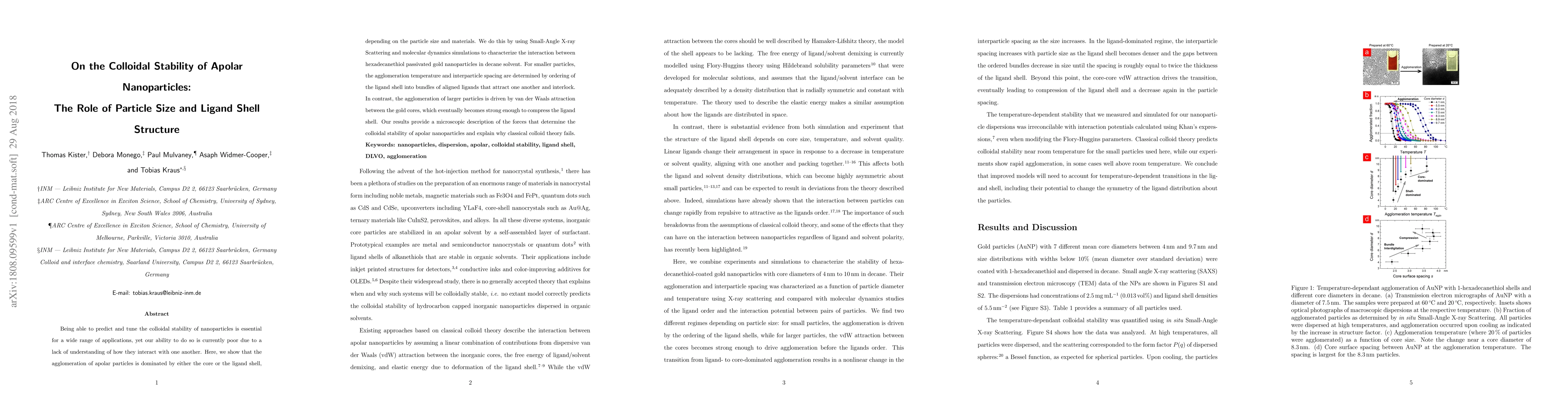 This study reveals that colloidal stability of apolar nanoparticles is influenced by particle size and ligand shell structure, with smaller particles agglomerating due to ligand shell interactions, while larger particles are driven by van der Waals forces between gold cores. The findings challenge classical colloid theory and provide insights into nanoparticle interactions.