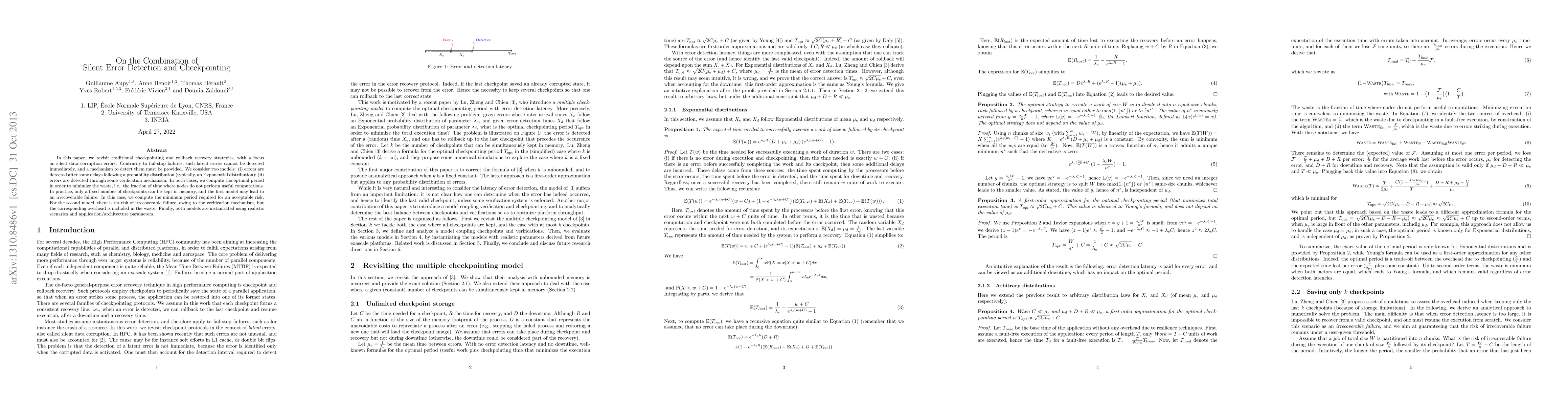 In this paper, we revisit traditional checkpointing and rollback recovery strategies, with a focus on silent data corruption errors. Contrarily to fail-stop failures, such latent errors cannot be detected immediately, and a mechanism to detect them must be provided. We consider two models: (i) errors are detected after some delays following a probability distribution (typically, an Exponential distribution); (ii) errors are detected through some verification mechanism. In both cases, we compute the optimal period in order to minimize the waste, i.e., the fraction of time where nodes do not perform useful computations. In practice, only a fixed number of checkpoints can be kept in memory, and the first model may lead to an irrecoverable failure. In this case, we compute the minimum period required for an acceptable risk. For the second model, there is no risk of irrecoverable failure, owing to the verification mechanism, but the corresponding overhead is included in the waste. Finally, both models are instantiated using realistic scenarios and application/architecture parameters.