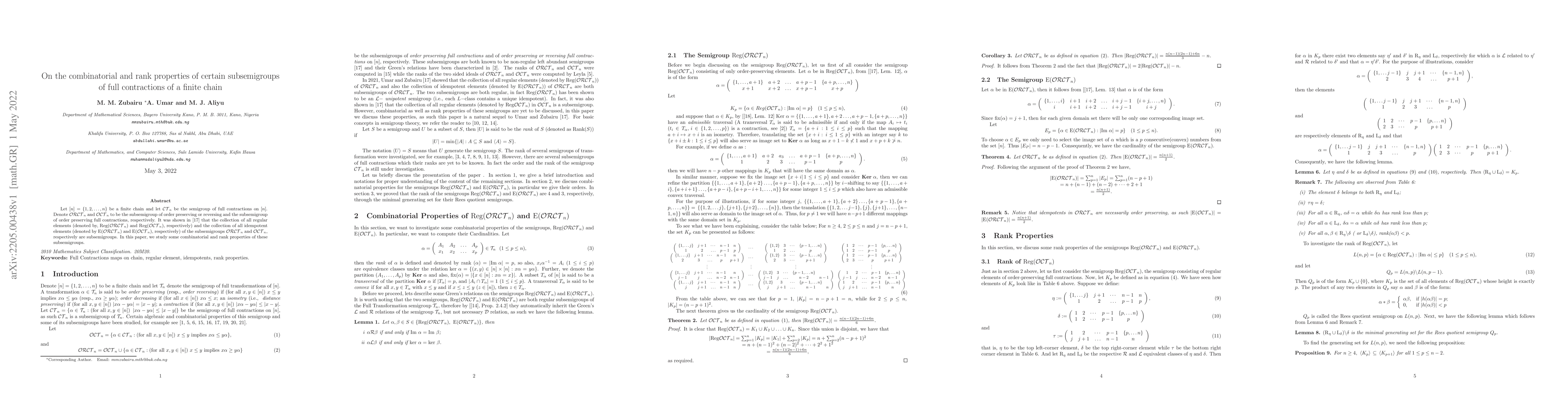 This paper investigates combinatorial and rank properties of the subsemigroups $\mathcal{ORCT}_{n}$ and $\mathcal{OCT}_{n}$, which are subsets of full contractions on a finite chain $[n]$. It builds on prior work showing that the collections of regular and idempotent elements within these subsemigroups are themselves subsemigroups.