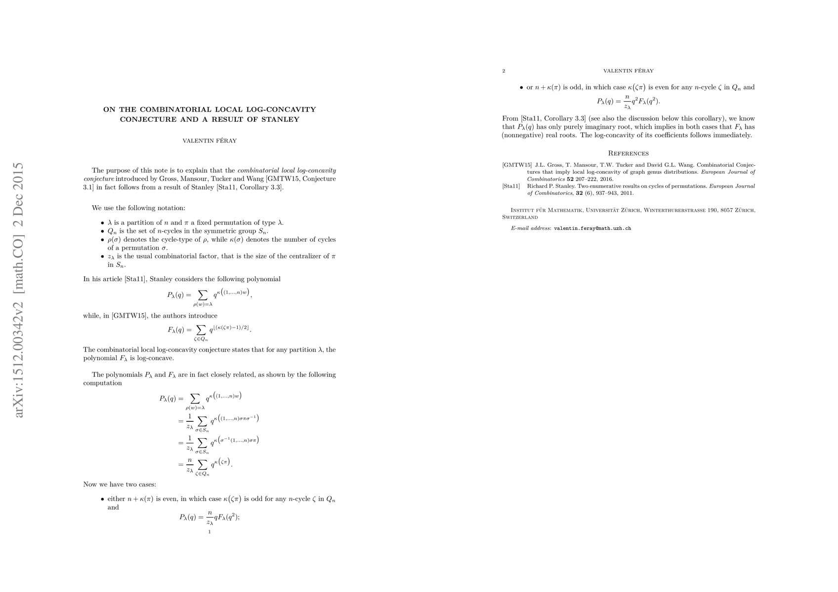 The purpose of this note is to explain that the combinatorial local log-concavity conjecture introduced by Gross, Mansour, Tucker and Wang (Eur. J. Comb. 52, 207-222, 2016) in fact follows from a result of Stanley (Eur. J. Comb. 32 (6), 937-943, 2011).