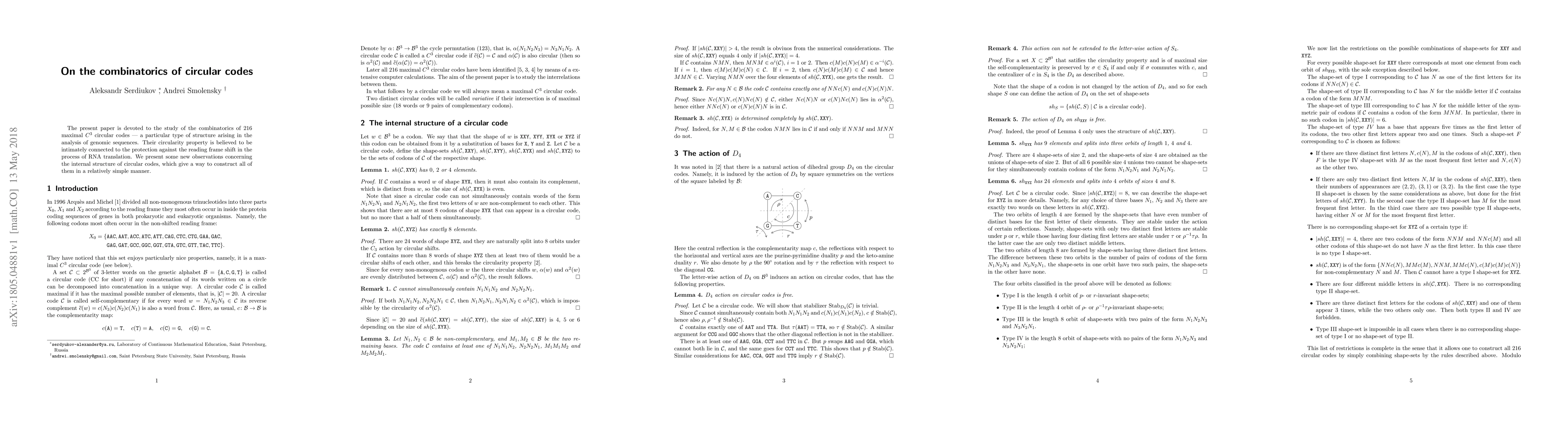 Researchers studied 216 maximal C^3 circular codes used in genomic sequences, finding a new way to construct them with relative simplicity. This discovery could help protect against RNA translation errors and understand the structure of these codes.