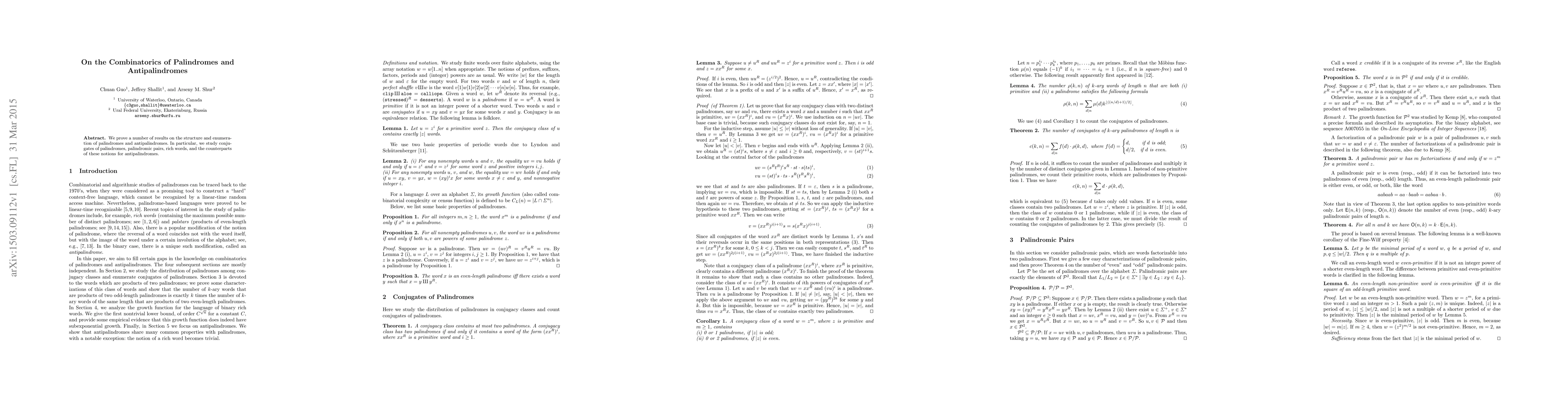This paper explores the combinatorial properties and enumeration of palindromes and antipalindromes, focusing on conjugates, palindromic pairs, rich words, and their antipalindromic counterparts. The study provides new insights into the structural relationships within these classes of words.