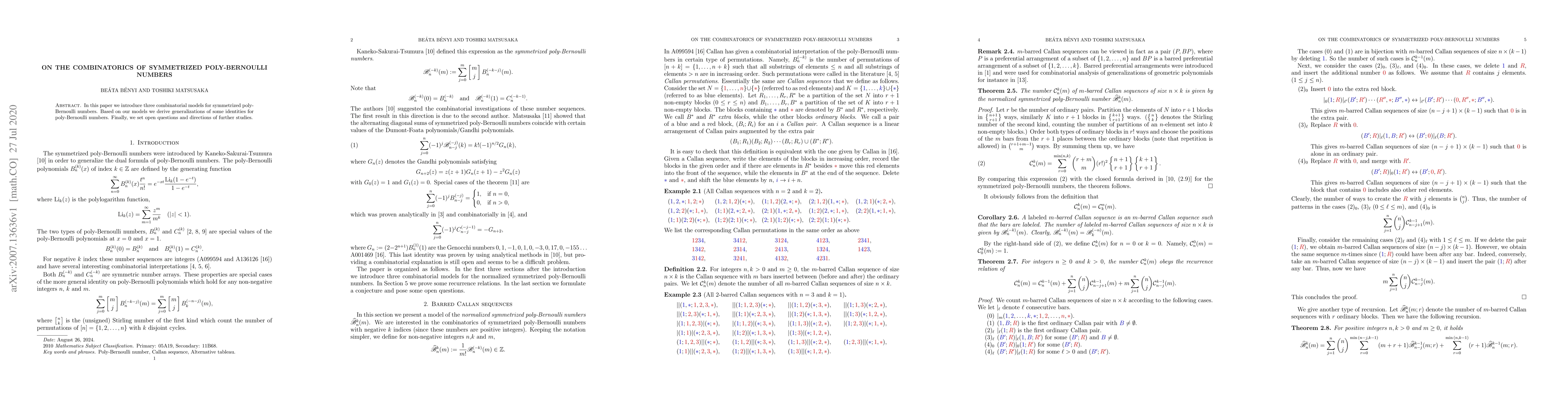 This paper introduces three combinatorial models for symmetrized poly-Bernoulli numbers and derives generalizations of existing identities. It also poses open questions for future research.