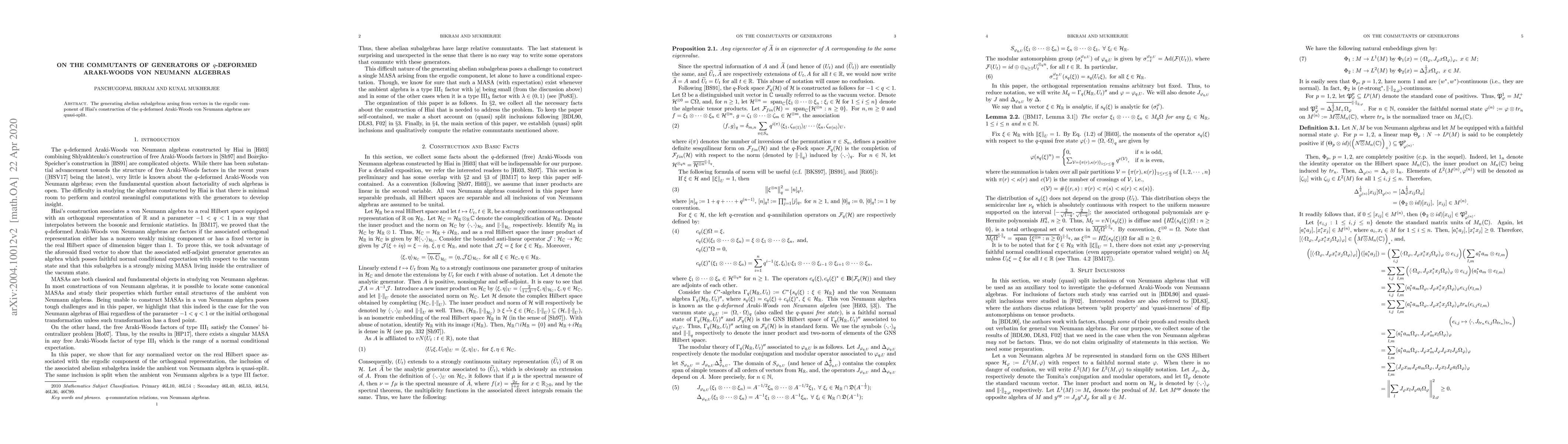 Summary: This paper explores the generating abelian subalgebras in Hiai's construction of q-deformed Araki-Woods von Neumann algebras, revealing they are quasi-split within the ergodic component. The focus is on the structure and properties of these subalgebras.