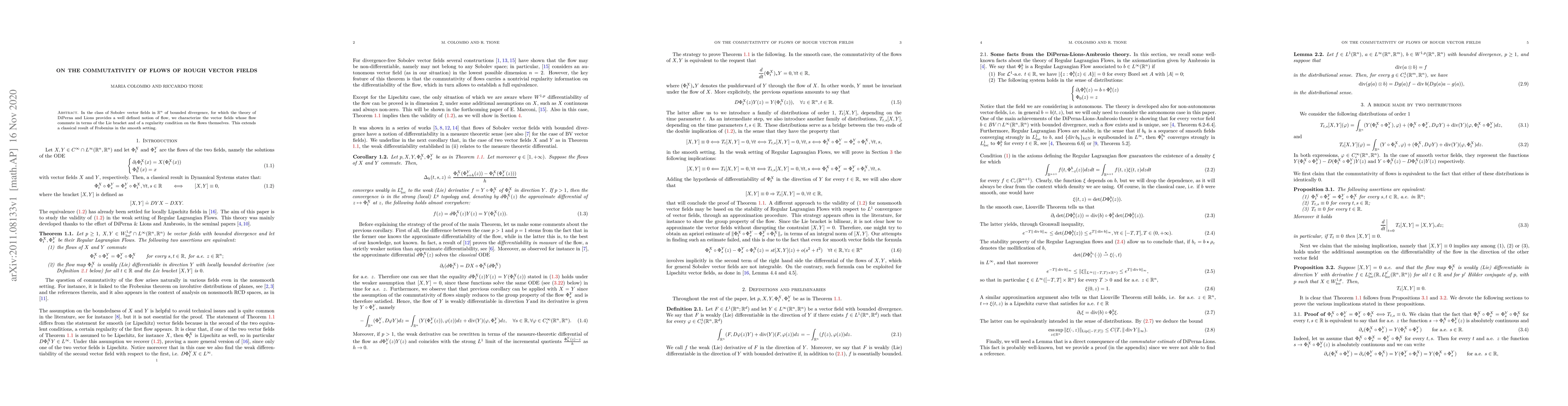 This paper characterizes vector fields whose flows commute in terms of Lie bracket and regularity conditions, extending a classical result to rough vector fields.