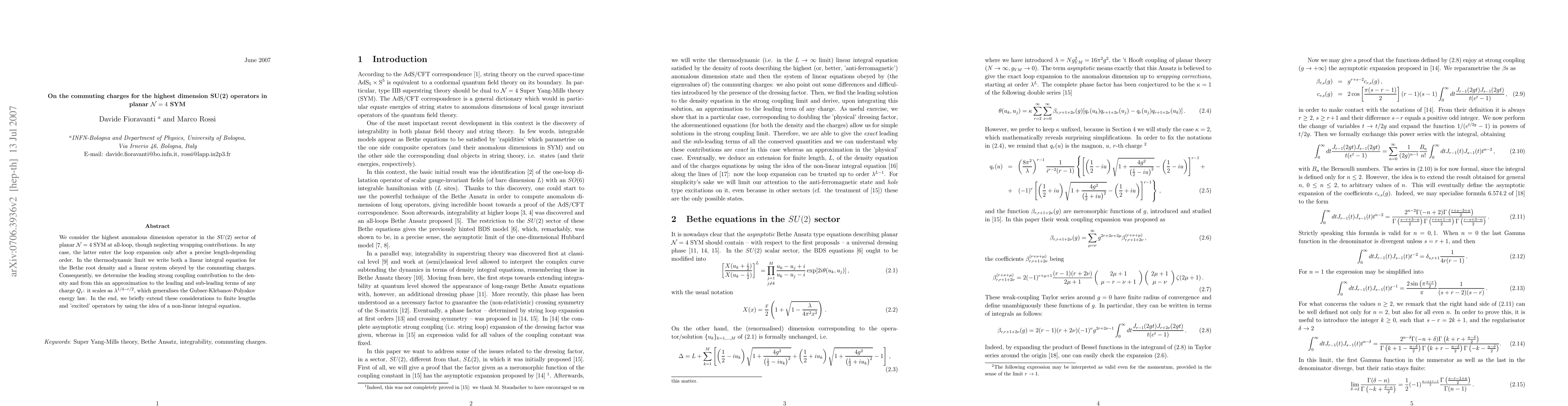 We consider the highest anomalous dimension operator in the SU(2) sector of planar ${\cal N}=4$ SYM at all-loop, though neglecting wrapping contributions. In any case, the latter enter the loop expansion only after a precise length-depending order. In the thermodynamic limit we write both a linear integral equation for the Bethe root density and a linear system obeyed by the commuting charges. Consequently, we determine the leading strong coupling contribution to the density and from this an approximation to the leading and sub-leading terms of any charge $Q_r$: it scales as $\lambda ^{1/4-r/2}$, which generalises the Gubser-Klebanov-Polyakov energy law. In the end, we briefly extend these considerations to finite lengths and 'excited' operators by using the idea of a non-linear integral equation.