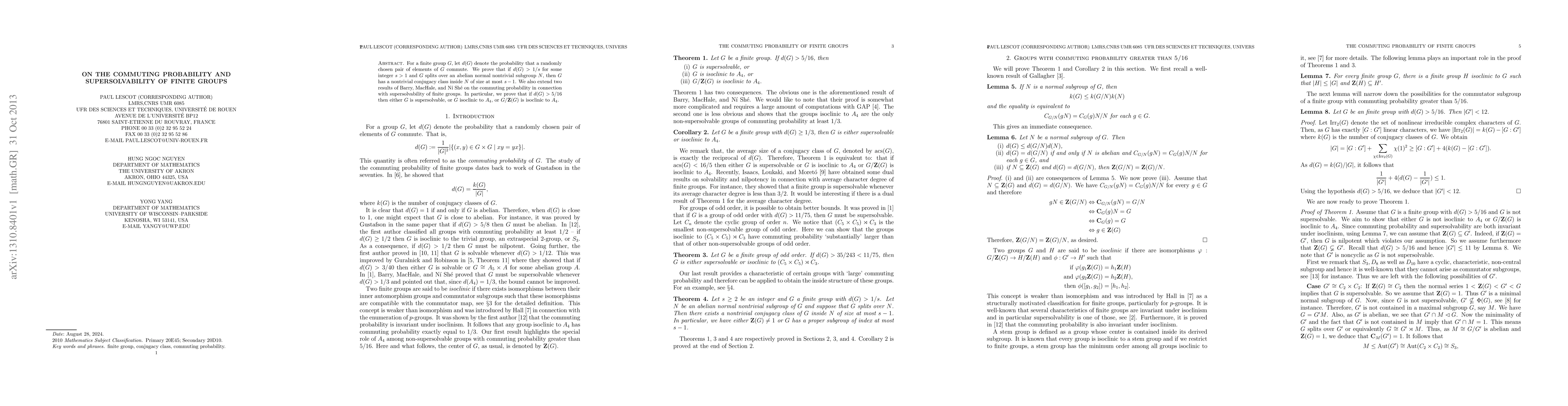 This paper explores the relationship between the commuting probability $d(G)$ of a finite group $G$ and its supersolvability, proving that high commuting probabilities imply structural constraints, including nontrivial conjugacy classes and specific group isoclinisms. It extends previous results linking commuting probability to supersolvability.
