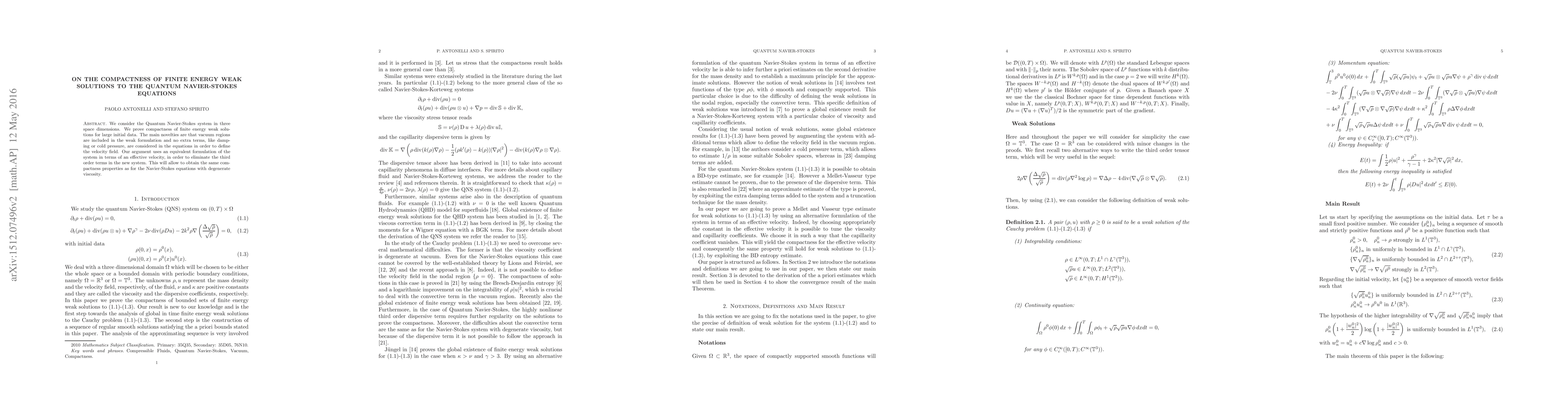 We consider the Quantum Navier-Stokes system in three space dimensions. We prove compactness of finite energy weak solutions for large initial data. The main novelties are that vacuum regions are included in the weak formulation and no extra terms, like damping or cold pressure, are considered in the equations in order to define the velocity field. Our argument uses an equivalent formulation of the system in terms of an effective velocity, in order to eliminate the third order terms in the new system. It allows us to derive estimates similar to the ones available in the case of the compressible Navier-Stokes with degenerate viscosity.