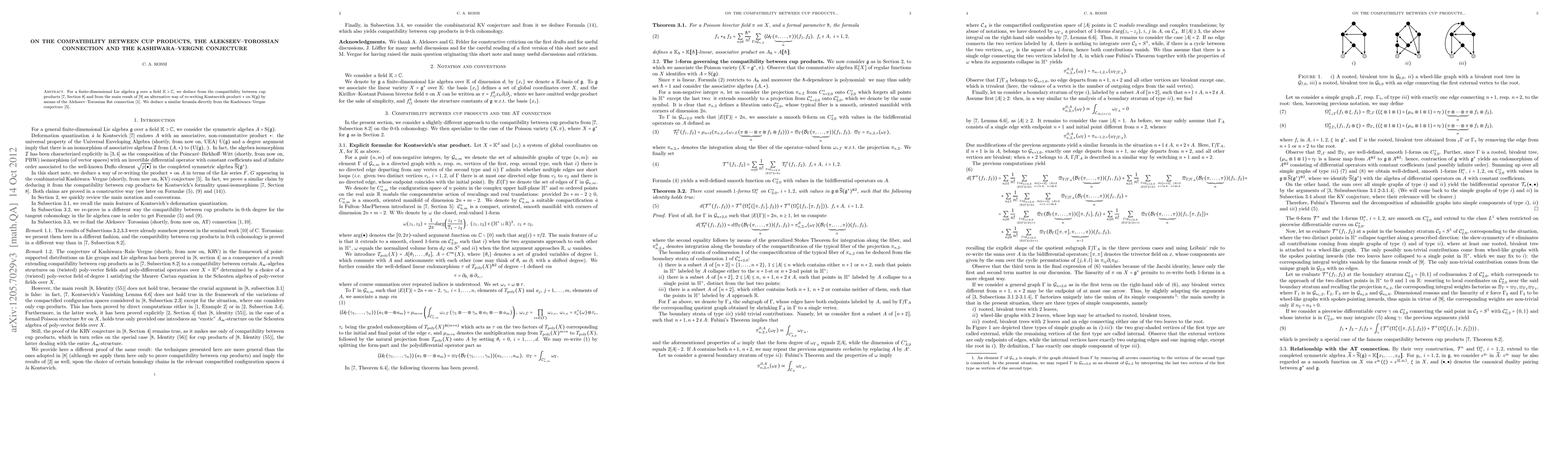 For a finite-dimensional Lie algebra $\mathfrak g$ over a field $\mathbb K\supset \mathbb C$, we deduce from the compatibility between cup products Kontsevich (2003, Section 8) and from the main result of Shoikhet (2001) an alternative way of re-writing Kontsevich product $\star$ on $\mathrm S(\mathfrak g)$ by means of the Alekseev--Torossian flat connection (Alekseev and Torossian, 2010). We deduce a similar formula directly from the Kashiwara--Vergne conjecture (Kashiwara and Vergne, 1978).