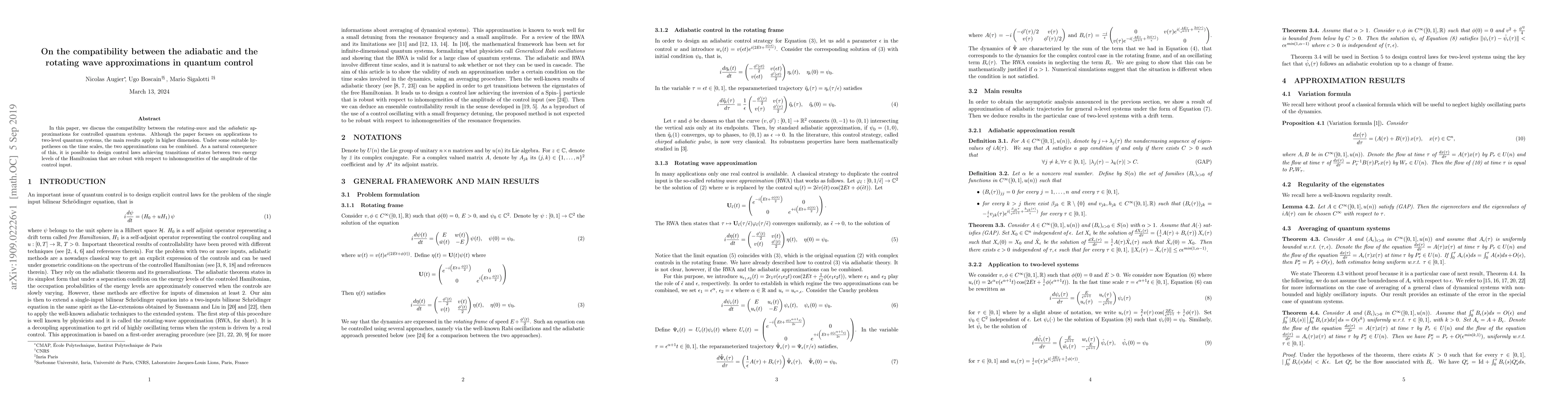 In this paper, we discuss the compatibility between the rotating-wave and the adiabatic approximations for controlled quantum systems. Although the paper focuses on applications to two-level quantum systems, the main results apply in higher dimension. Under some suitable hypotheses on the time scales, the two approximations can be combined. As a natural consequence of this, it is possible to design control laws achieving transitions of states between two energy levels of the Hamiltonian that are robust with respect to inhomogeneities of the amplitude of the control input.
