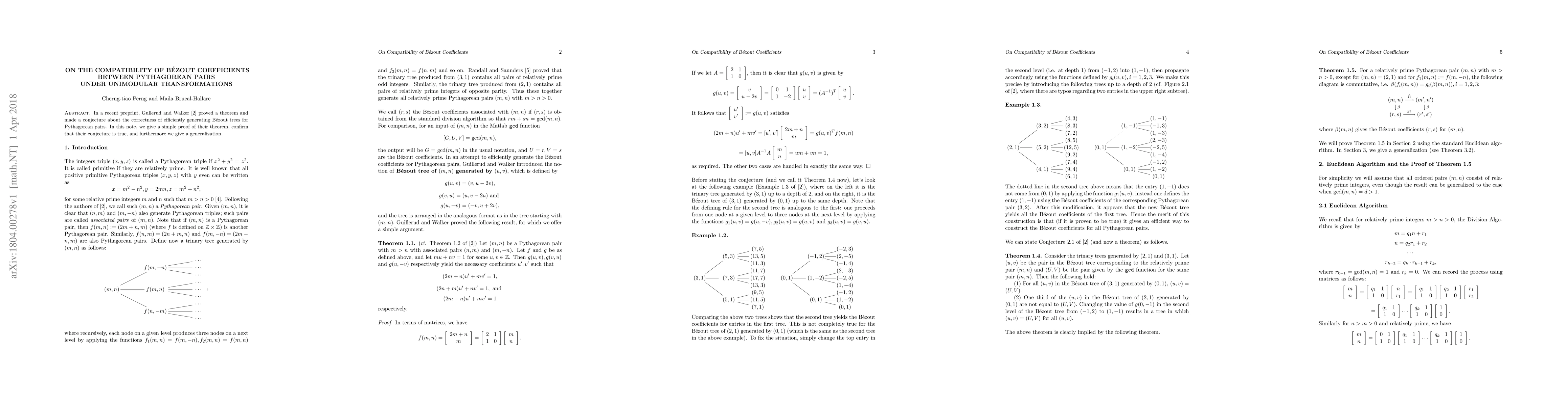 This paper provides a straightforward proof of Gullerud and Walker's theorem on generating B\'ezout trees for Pythagorean pairs, confirms their conjecture about compatibility under unimodular transformations, and extends the findings to a broader context.