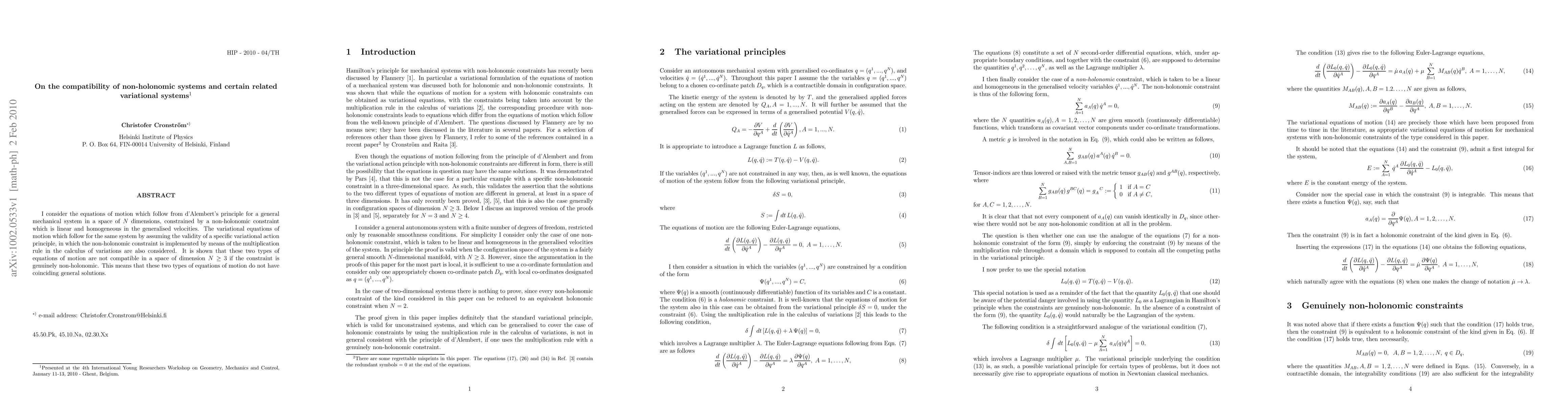 This paper investigates the compatibility of equations of motion derived from d'Alembert's principle for non-holonomic mechanical systems and those obtained via a specific variational action principle. It concludes that these equations are incompatible for systems in three or more dimensions when the constraints are genuinely non-holonomic.