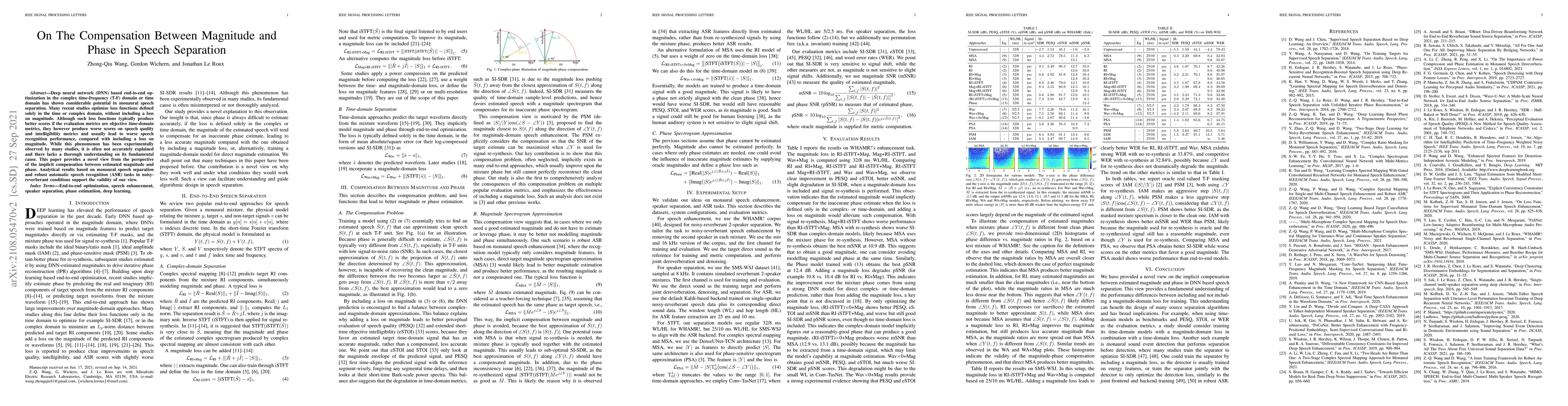 Deep neural network (DNN) based end-to-end optimization in the complex time-frequency (T-F) domain or time domain has shown considerable potential in monaural speech separation. Many recent studies optimize loss functions defined solely in the time or complex domain, without including a loss on magnitude. Although such loss functions typically produce better scores if the evaluation metrics are objective time-domain metrics, they however produce worse scores on speech quality and intelligibility metrics and usually lead to worse speech recognition performance, compared with including a loss on magnitude. While this phenomenon has been experimentally observed by many studies, it is often not accurately explained and there lacks a thorough understanding on its fundamental cause. This paper provides a novel view from the perspective of the implicit compensation between estimated magnitude and phase. Analytical results based on monaural speech separation and robust automatic speech recognition (ASR) tasks in noisy-reverberant conditions support the validity of our view.