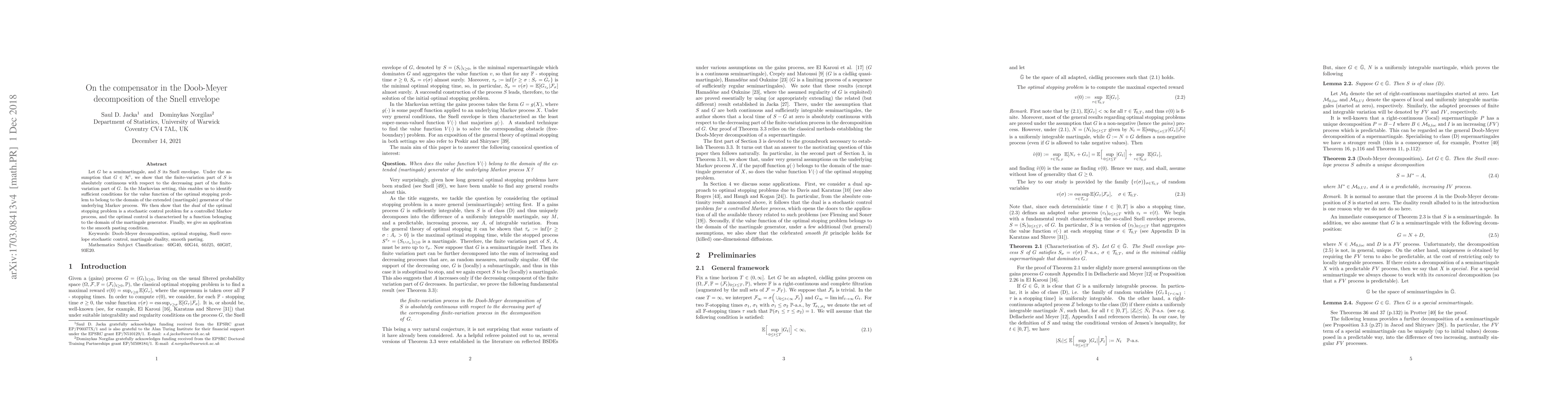The paper presents a detailed analysis of the Doob-Meyer decomposition of the Snell envelope, extending previous work to show absolute continuity under specific conditions and identifying the dual problem as a stochastic control issue.