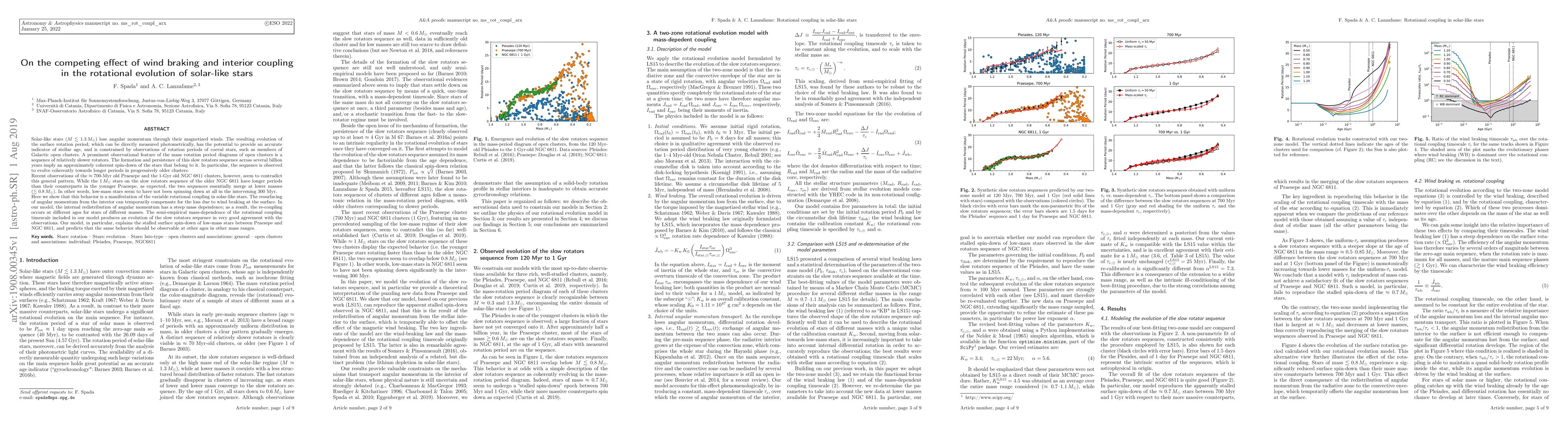 Solar-like stars (M < 1.3 Msun) lose angular momentum through their magnetized winds. The resulting evolution of the surface rotation period, which can be directly measured photometrically, has the potential to provide an accurate indicator of stellar age, and is constrained by observations of rotation periods of coeval stars, such as members of Galactic open clusters. A prominent observational feature of the mass-rotation period diagrams of open clusters is a sequence of relatively slower rotators. The formation and persistence of this slow rotators sequence across several billion years imply an approximately coherent spin-down of the stars that belong to it. In particular, the sequence is observed to evolve coherently towards longer periods in progressively older clusters. Recent observations of the 700-Myr old Praesepe and the 1-Gyr old NGC 6811 clusters, however, seem to contradict this general pattern. While the 1 Msun stars on the slow rotators sequence of the older NGC 6811 have longer periods than their counterparts in the younger Praesepe, as expected, the two sequences essentially merge at lower masses (< 0.8 Msun). In other words, low-mass stars seem to have not been spinning down at all in the intervening 300 Myr. Here we show that this behavior is a manifestation of the variable rotational coupling in solar-like stars. The resurfacing of angular momentum from the interior can temporarily compensate for the loss due to wind braking at the surface. The internal redistribution of angular momentum has a steep mass dependence; as a result, the re-coupling occurs at different ages for stars of different masses. Our model explains the stalled surface spin-down of low-mass stars between Praesepe and NGC 6811, and predicts that the same behavior should be observable at other ages in other mass ranges.