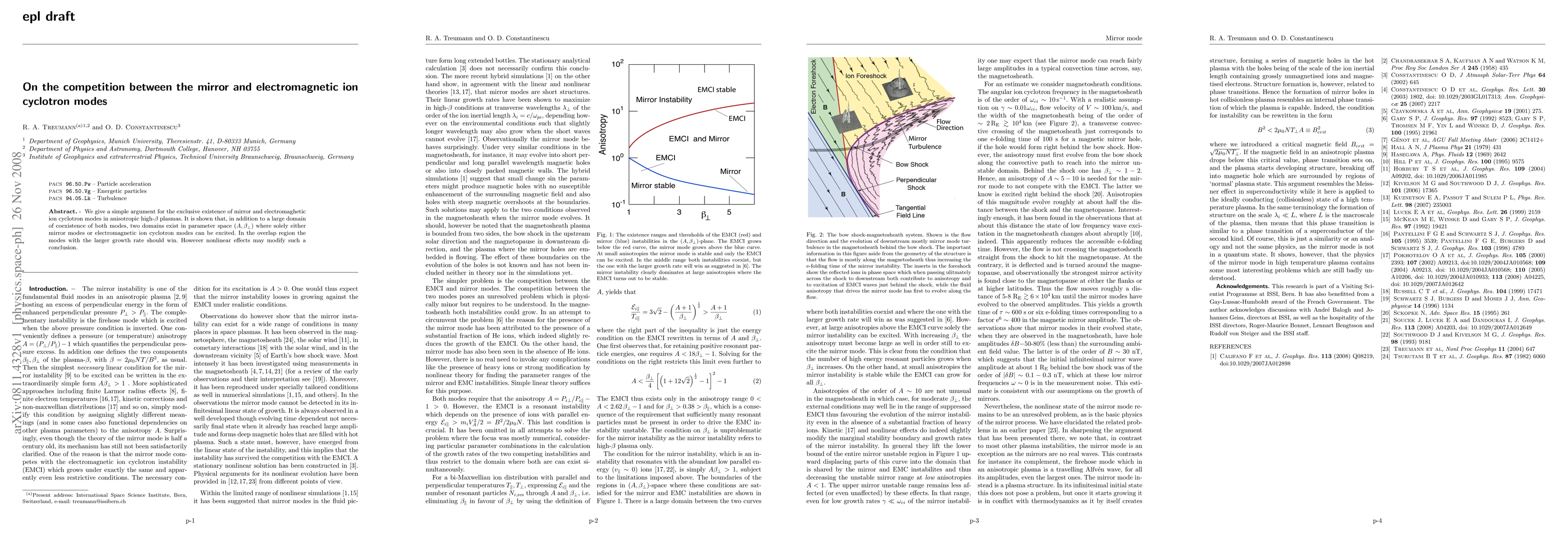 We give a simple argument for the exclusive existence of mirror and electromaghetic ion cyclotron modes in anisotropic high-$\beta$ plasmas. It is shown that, in addition to a large domain of coexistence of both modes, two domains exist in parameter space $(A,\beta_\perp)$ where solely either mirror modes or electromagnetic ion cyclotron modes can be excited. In the overlap region the modes with the larger growth rate should win. However nonlinear effects may modify such a conclusion.