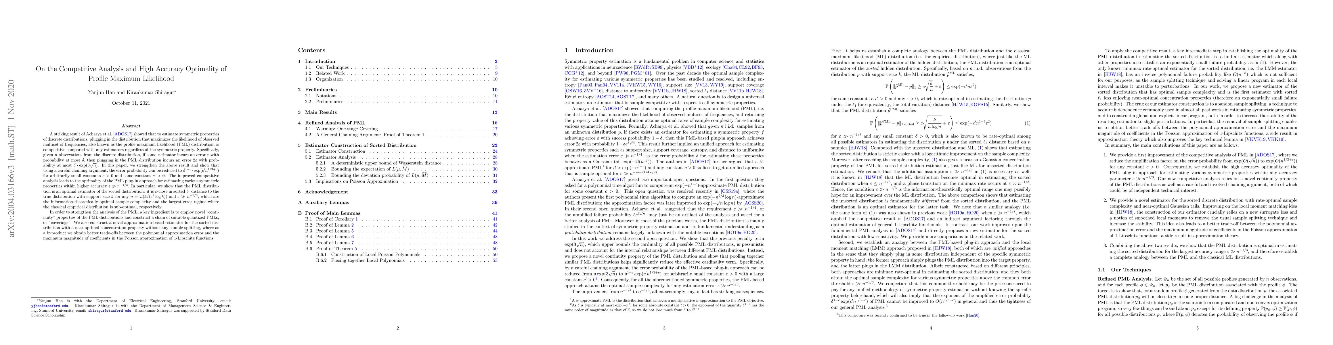 A study shows that using a specific method called Profile Maximum Likelihood (PML) to analyze data can achieve high accuracy with competitive performance compared to other methods, even in complex distributions.