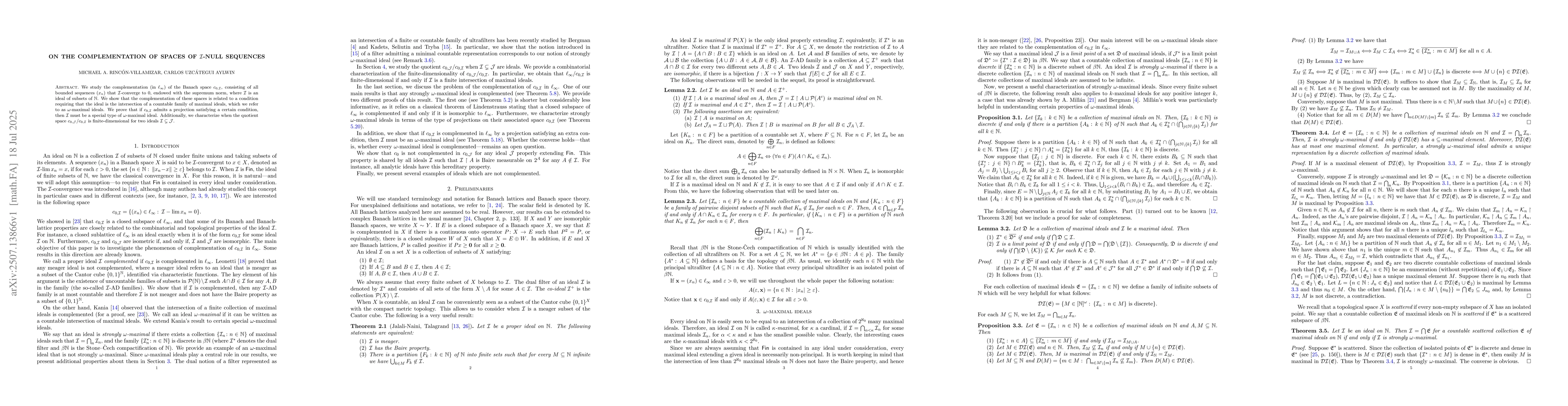 We study the complementation (in $\ell_\infty$) of the Banach space $c_{0,\mathcal{I}}$, consisting of all bounded sequences $(x_n)$ that $\mathcal{I}$-converge to $0$, endowed with the supremum norm, where $\mathcal{I}$ is an ideal of subsets of $\mathbb{N}$. We show that the complementation of these spaces is related to a condition requiring that the ideal is the intersection of a countable family of maximal ideals, which we refer to as $\omega$-maximal ideals. We prove that if $c_{0,\mathcal{I}}$ admits a projection satisfying a certain condition, then $\mathcal{I}$ must be a special type of $\omega$-maximal ideal. Additionally, we characterize when the quotient space $c_{0,\mathcal{J}} / c_{0,\mathcal{I}}$ is finite-dimensional for two ideals $\mathcal{I} \subsetneq \mathcal{J}$.