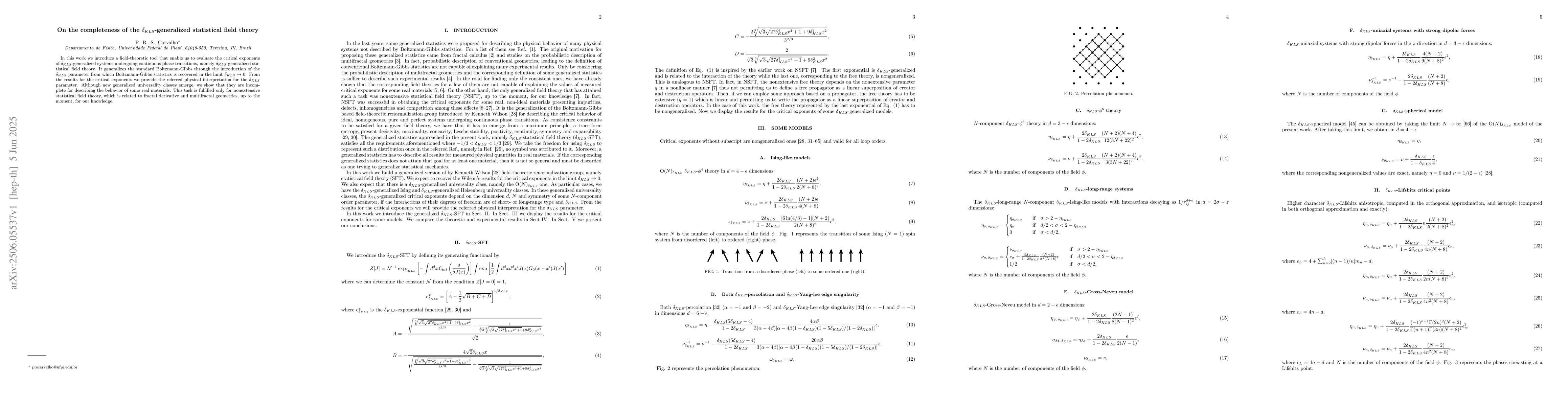 In this work we introduce a field-theoretic tool that enable us to evaluate the critical exponents of $\delta_{KLS}$-generalized systems undergoing continuous phase transitions, namely $\delta_{KLS}$-generalized statistical field theory. It generalizes the standard Boltzmann-Gibbs through the introduction of the $\delta_{KLS}$ parameter from which Boltzmann-Gibbs statistics is recovered in the limit $\delta_{KLS}\rightarrow 0$. From the results for the critical exponents we provide the referred physical interpretation for the $\delta_{KLS}$ parameter. Although new generalized universality classes emerge, we show that they are incomplete for describing the behavior of some real materials. This task is fulfilled only for nonextensive statistical field theory, which is related to fractal derivative and multifractal geometries, up to the moment, for our knowledge.