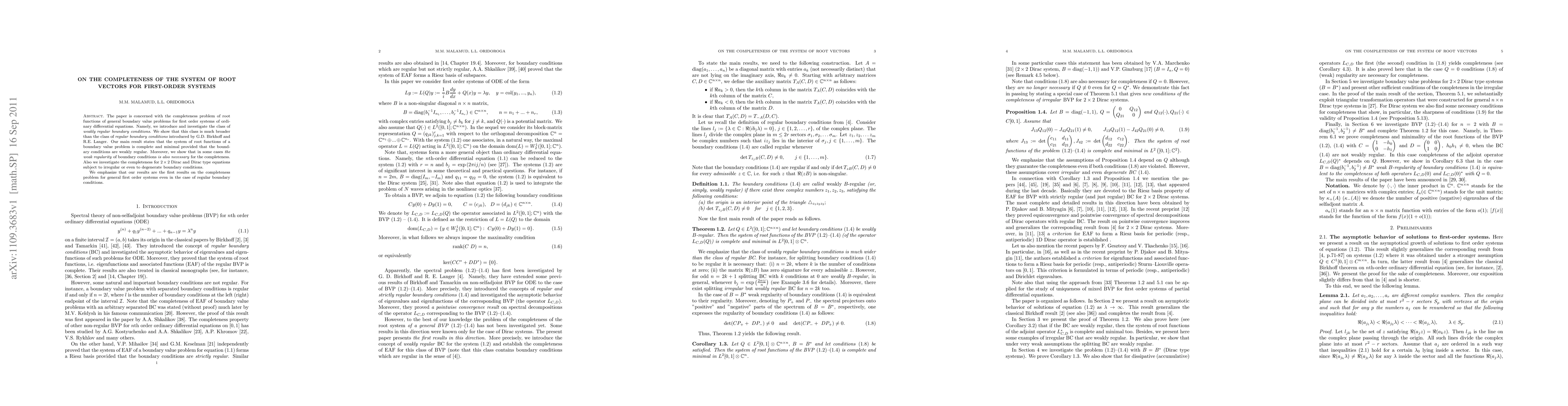 The paper is concerned with the completeness problem of root functions of general boundary value problems for first order systems of ordinary differential equations. Namely, we introduce and investigate the class of \emph{weakly regular boundary conditions}. We show that this class is much broader than the class of {\em regular boundary conditions} introduced by G.D. Birkhoff and R.E. Langer. Our main result states that the system of root functions of a boundary value problem is complete and minimal provided that the boundary conditions are weakly regular. Moreover, we show that in some cases \emph{the weak regularity} of boundary conditions \emph{is also necessary} for the completeness. Also we investigate the completeness for $2\times 2$ Dirac and Dirac type equations subject to irregular or even to degenerate boundary conditions. We emphasize that our results are the first results on the completeness problem for general first order systems even in the case of regular boundary conditions.