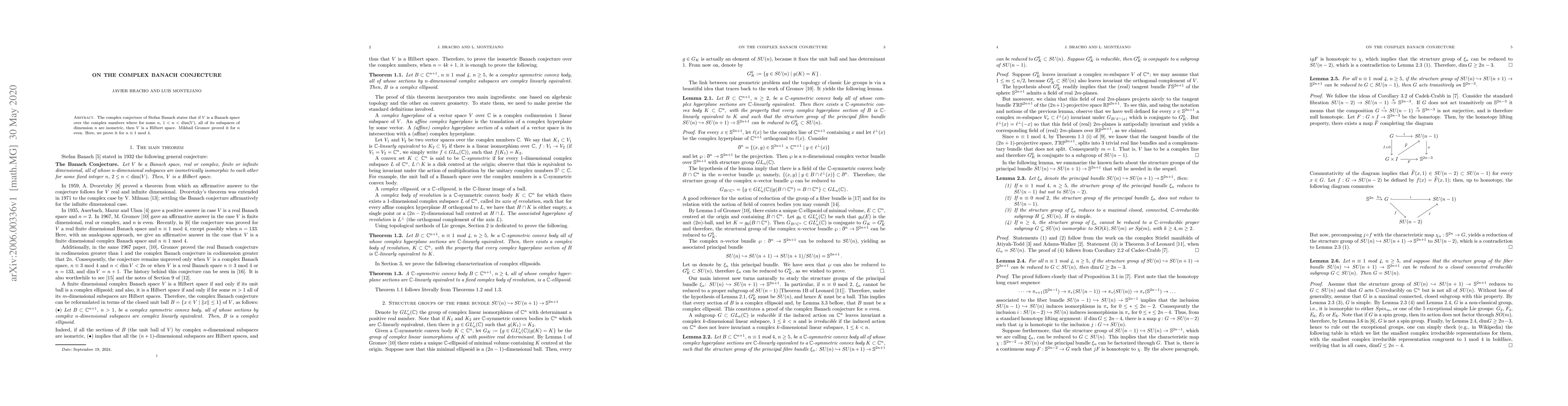 The complex conjecture of Stefan Banach states that if V is a Banach space