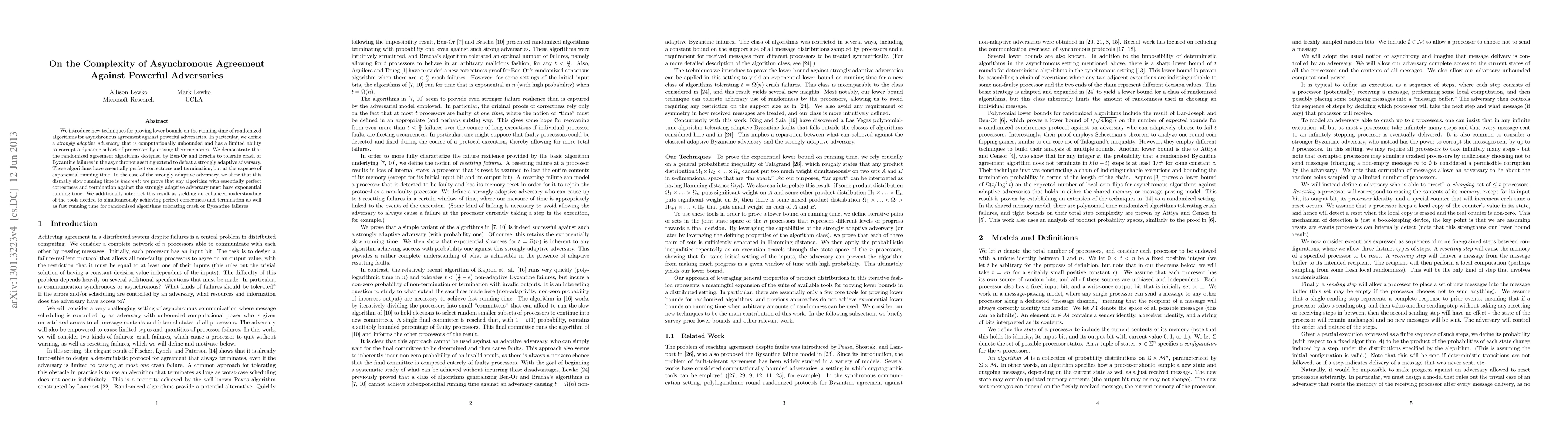 We introduce new techniques for proving lower bounds on the running time of randomized algorithms for asynchronous agreement against powerful adversaries. In particular, we define a \emph{strongly adaptive adversary} that is computationally unbounded and has a limited ability to corrupt a dynamic subset of processors by erasing their memories. We demonstrate that the randomized agreement algorithms designed by Ben-Or and Bracha to tolerate crash or Byzantine failures in the asynchronous setting extend to defeat a strongly adaptive adversary. These algorithms have essentially perfect correctness and termination, but at the expense of exponential running time. In the case of the strongly adaptive adversary, we show that this dismally slow running time is \emph{inherent}: we prove that any algorithm with essentially perfect correctness and termination against the strongly adaptive adversary must have exponential running time. We additionally interpret this result as yielding an enhanced understanding of the tools needed to simultaneously achieving perfect correctness and termination as well as fast running time for randomized algorithms tolerating crash or Byzantine failures.