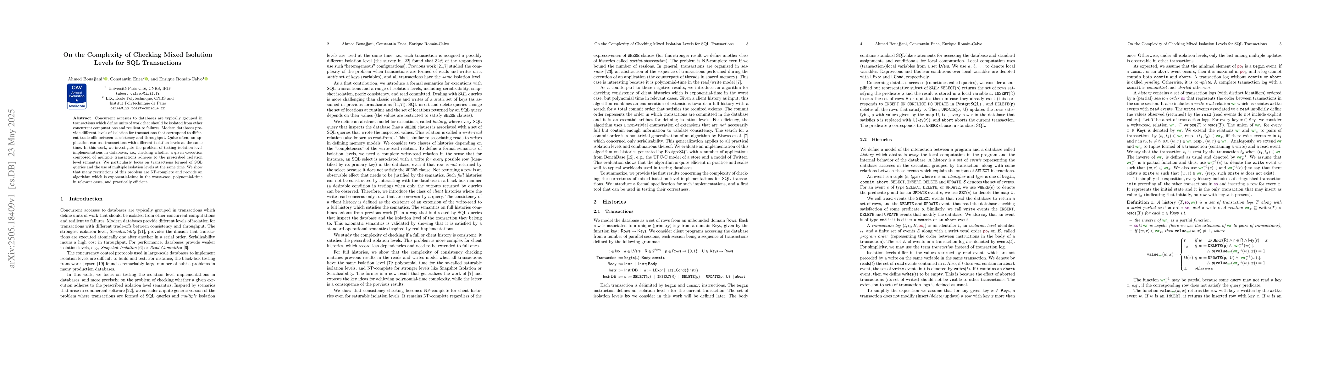 The paper presents an algorithm for checking mixed isolation levels in SQL transactions, proving NP-completeness for certain problem restrictions, and offering a practical solution.