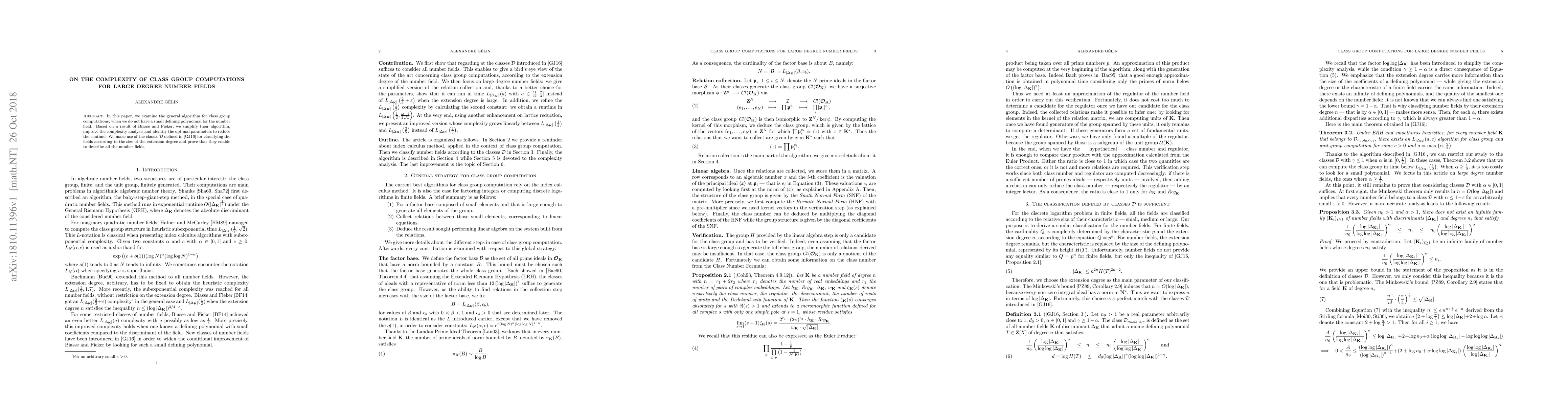 This paper refines the algorithm for class group computations in large degree number fields without small defining polynomials, improving complexity analysis and runtime. It uses classes $\mathcal D$ to classify fields based on extension degree, enabling comprehensive description of all such fields.