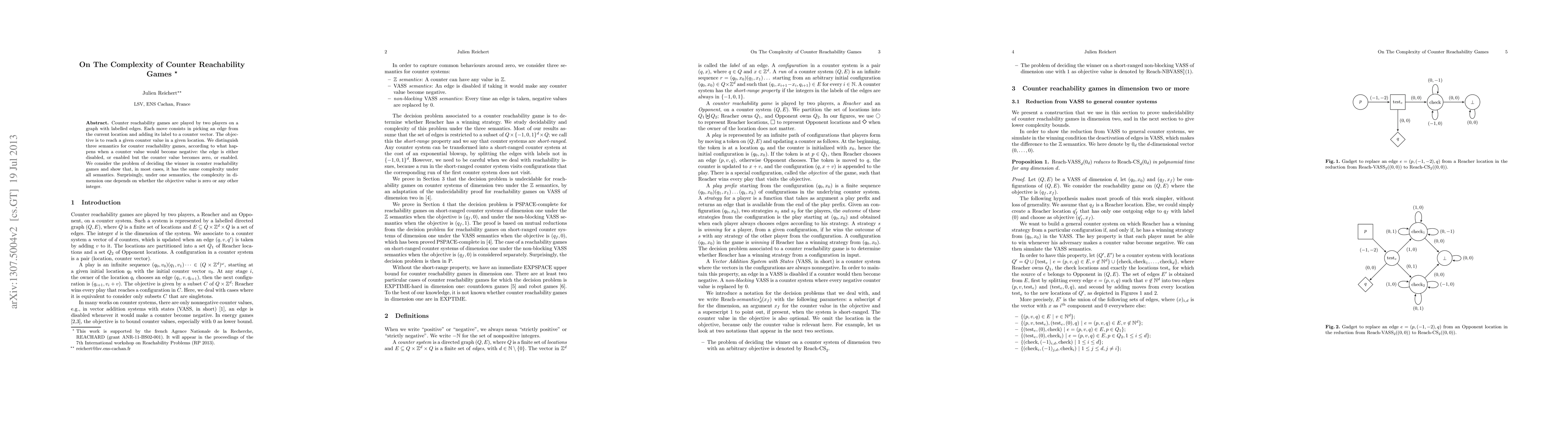 This paper studies the complexity of counter reachability games on graphs, where players manipulate counter values by selecting edges. It examines three semantics for counter behavior and finds that most game complexities are uniform across semantics, but dimension one complexity varies based on the objective counter value.