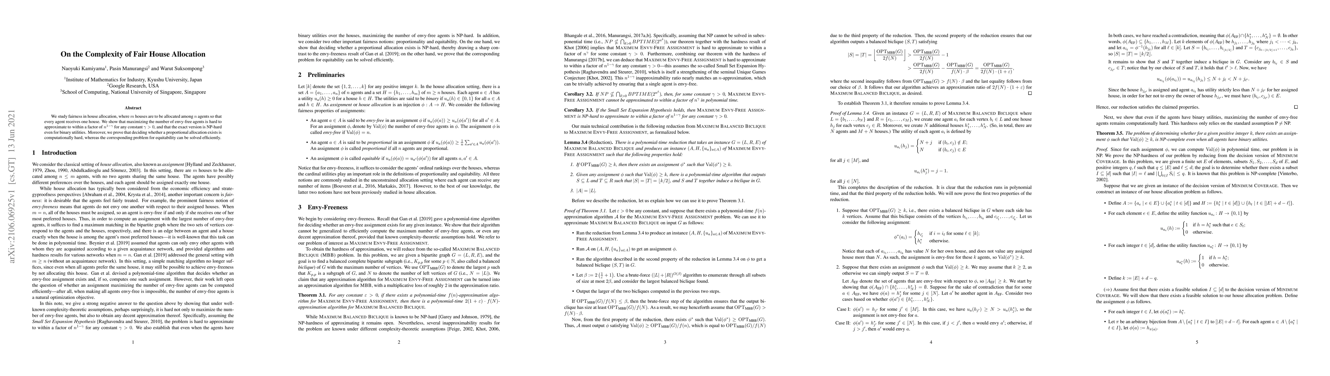 We study fairness in house allocation, where $m$ houses are to be allocated among $n$ agents so that every agent receives one house. We show that maximizing the number of envy-free agents is hard to approximate to within a factor of $n^{1-\gamma}$ for any constant $\gamma>0$, and that the exact version is NP-hard even for binary utilities. Moreover, we prove that deciding whether a proportional allocation exists is computationally hard, whereas the corresponding problem for equitability can be solved efficiently.