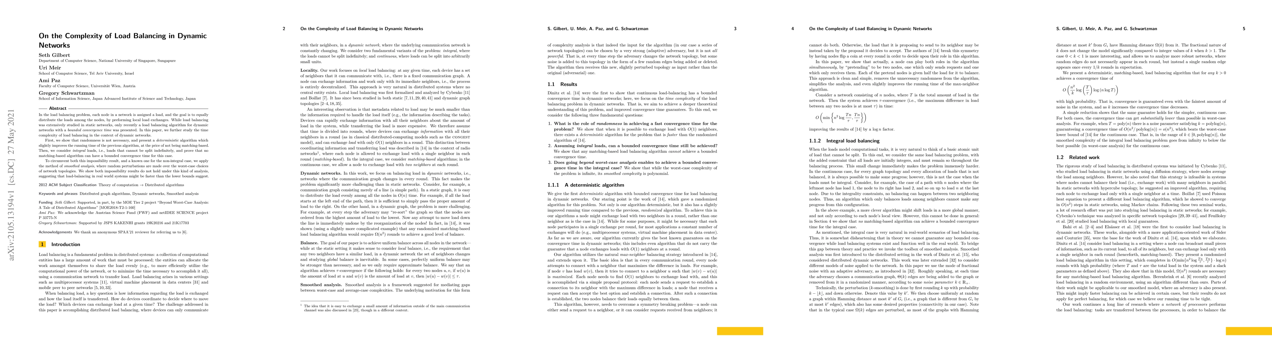 This paper explores the complexity of load balancing in dynamic networks, presenting a deterministic algorithm that improves running time without randomness. It also proves that matching-based algorithms cannot achieve bounded convergence for integral loads, but smoothed analysis suggests that load balancing in real-world systems may be faster than theoretical lower bounds indicate.