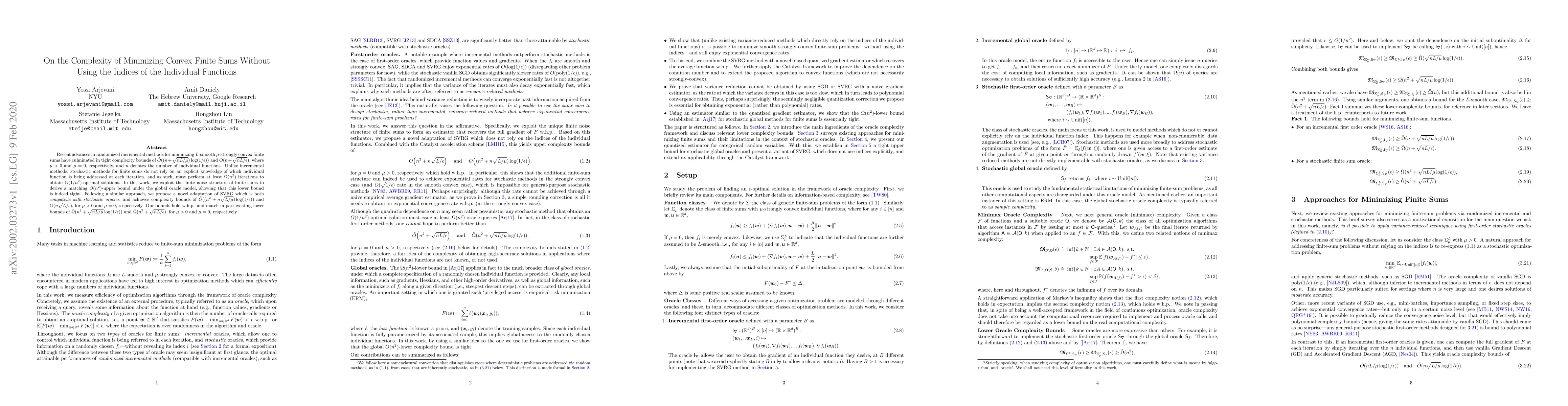 Recent advances in randomized incremental methods for minimizing $L$-smooth $\mu$-strongly convex finite sums have culminated in tight complexity of $\tilde{O}((n+\sqrt{n L/\mu})\log(1/\epsilon))$ and $O(n+\sqrt{nL/\epsilon})$, where $\mu>0$ and $\mu=0$, respectively, and $n$ denotes the number of individual functions. Unlike incremental methods, stochastic methods for finite sums do not rely on an explicit knowledge of which individual function is being addressed at each iteration, and as such, must perform at least $\Omega(n^2)$ iterations to obtain $O(1/n^2)$-optimal solutions. In this work, we exploit the finite noise structure of finite sums to derive a matching $O(n^2)$-upper bound under the global oracle model, showing that this lower bound is indeed tight. Following a similar approach, we propose a novel adaptation of SVRG which is both \emph{compatible with stochastic oracles}, and achieves complexity bounds of $\tilde{O}((n^2+n\sqrt{L/\mu})\log(1/\epsilon))$ and $O(n\sqrt{L/\epsilon})$, for $\mu>0$ and $\mu=0$, respectively. Our bounds hold w.h.p. and match in part existing lower bounds of $\tilde{\Omega}(n^2+\sqrt{nL/\mu}\log(1/\epsilon))$ and $\tilde{\Omega}(n^2+\sqrt{nL/\epsilon})$, for $\mu>0$ and $\mu=0$, respectively.
