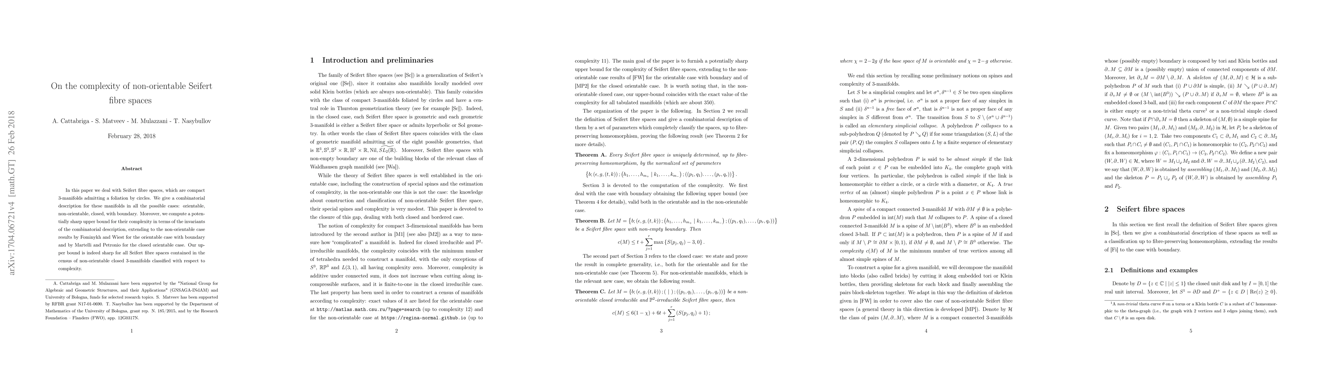 This paper provides a combinatorial description of Seifert fibre spaces, focusing on both orientable and non-orientable cases, and computes an upper bound for their complexity based on combinatorial invariants, extending previous results for orientable cases.