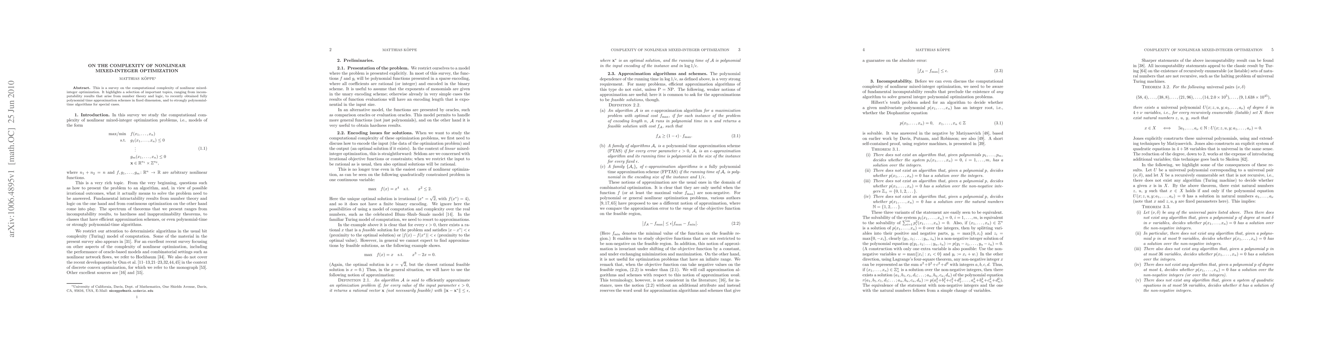 This survey explores the computational complexity of nonlinear mixed-integer optimization, covering incomputability results from number theory and logic, recent advances in approximation schemes, and strongly polynomial-time algorithms for specific cases.