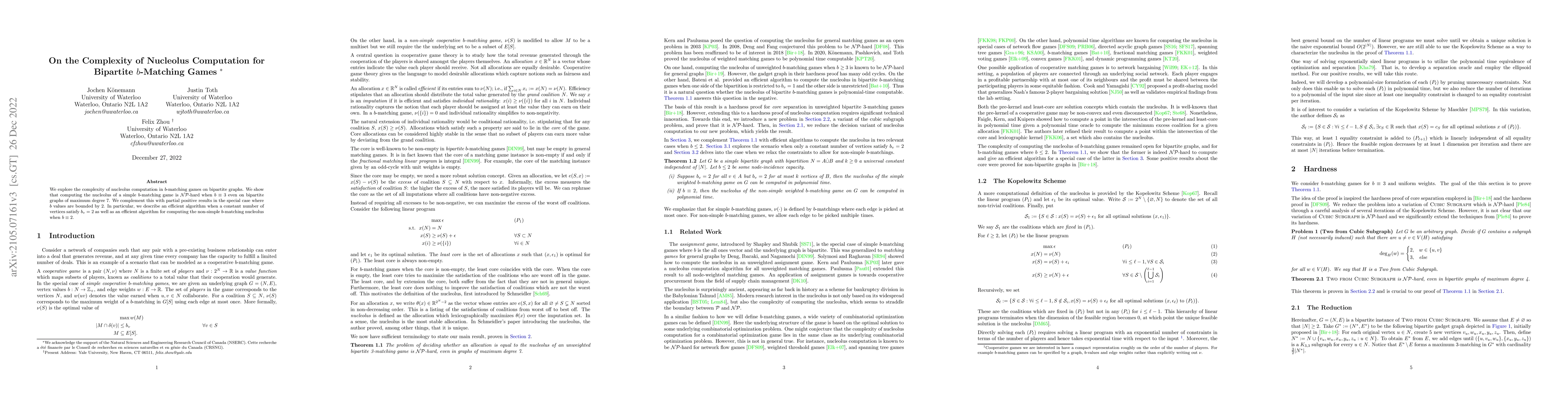This research investigates the computational complexity of the nucleolus in b-matching games on bipartite graphs, demonstrating that its computation is NP-hard even for graphs with a maximum degree of 7. It also provides efficient algorithms for nucleolus computation in special cases where b values are constrained to 2.