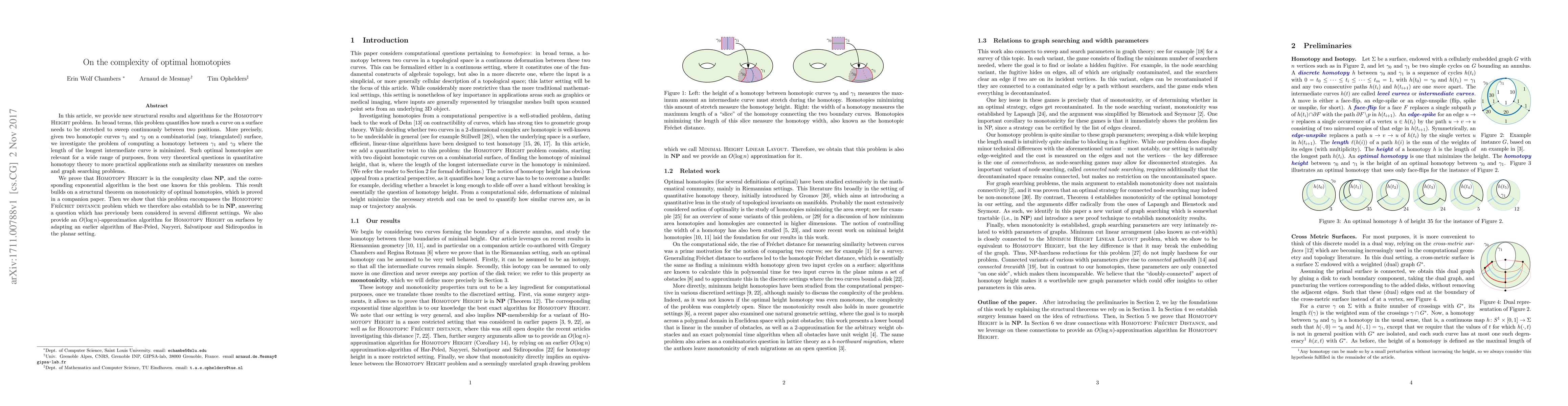In this article, we provide new structural results and algorithms for the Homotopy Height problem. In broad terms, this problem quantifies how much a curve on a surface needs to be stretched to sweep continuously between two positions. More precisely, given two homotopic curves $\gamma_1$ and $\gamma_2$ on a combinatorial (say, triangulated) surface, we investigate the problem of computing a homotopy between $\gamma_1$ and $\gamma_2$ where the length of the longest intermediate curve is minimized. Such optimal homotopies are relevant for a wide range of purposes, from very theoretical questions in quantitative homotopy theory to more practical applications such as similarity measures on meshes and graph searching problems. We prove that Homotopy Height is in the complexity class NP, and the corresponding exponential algorithm is the best one known for this problem. This result builds on a structural theorem on monotonicity of optimal homotopies, which is proved in a companion paper. Then we show that this problem encompasses the Homotopic Fr\'echet distance problem which we therefore also establish to be in NP, answering a question which has previously been considered in several different settings. We also provide an O(log n)-approximation algorithm for Homotopy Height on surfaces by adapting an earlier algorithm of Har-Peled, Nayyeri, Salvatipour and Sidiropoulos in the planar setting.