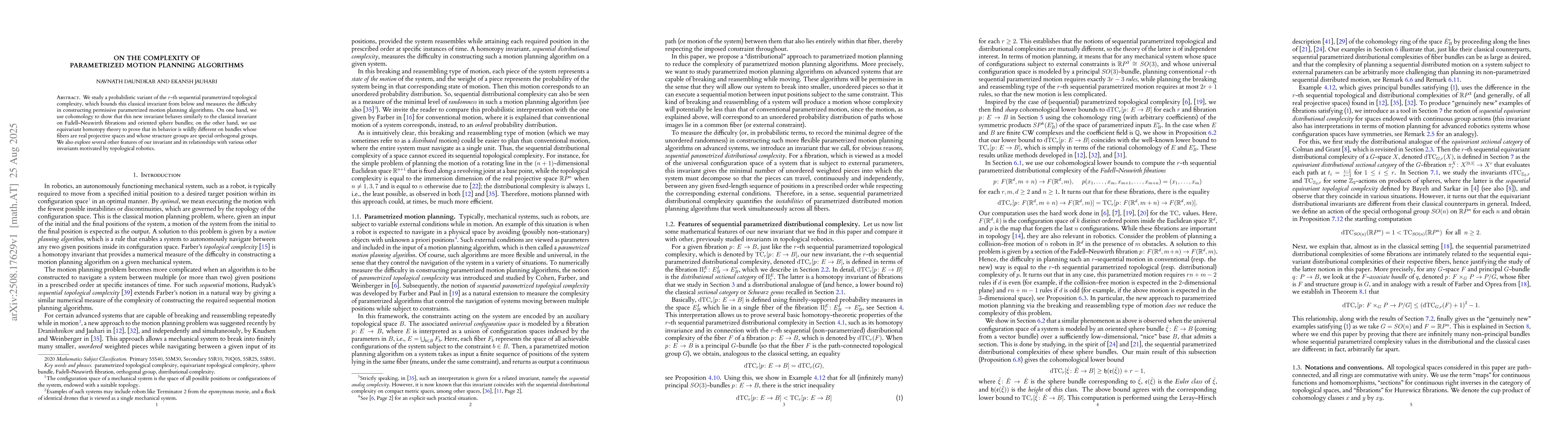 We study a probabilistic variant of the r-th sequential parametrized topological complexity, which bounds this classical invariant from below and measures the difficulty in constructing permissive parametrized motion planning algorithms. On one hand, we use cohomology to show that this new invariant behaves similarly to the classical invariant on Fadell-Neuwirth fibrations and oriented sphere bundles; on the other hand, we use equivariant homotopy theory to prove that its behavior is wildly different on bundles whose fibers are real projective spaces and whose structure groups are special orthogonal groups. We also explore several other features of our invariant and its relationships with various other invariants motivated by topological robotics.