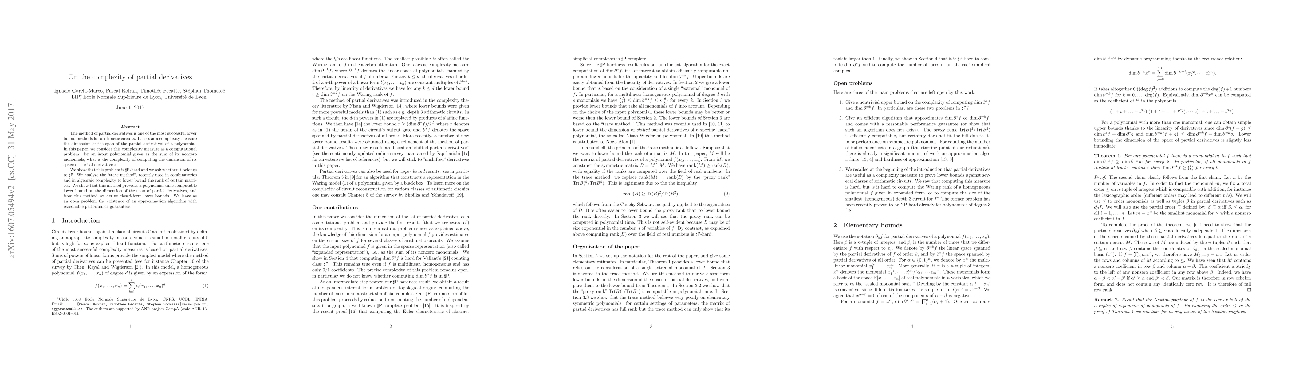This paper investigates the computational complexity of determining the dimension of the space of partial derivatives of a polynomial, showing that this problem is #P-hard. It also introduces a polynomial-time computable lower bound using the trace method and discusses the potential for closed-form lower bounds, while leaving the development of an approximation algorithm as an open problem.