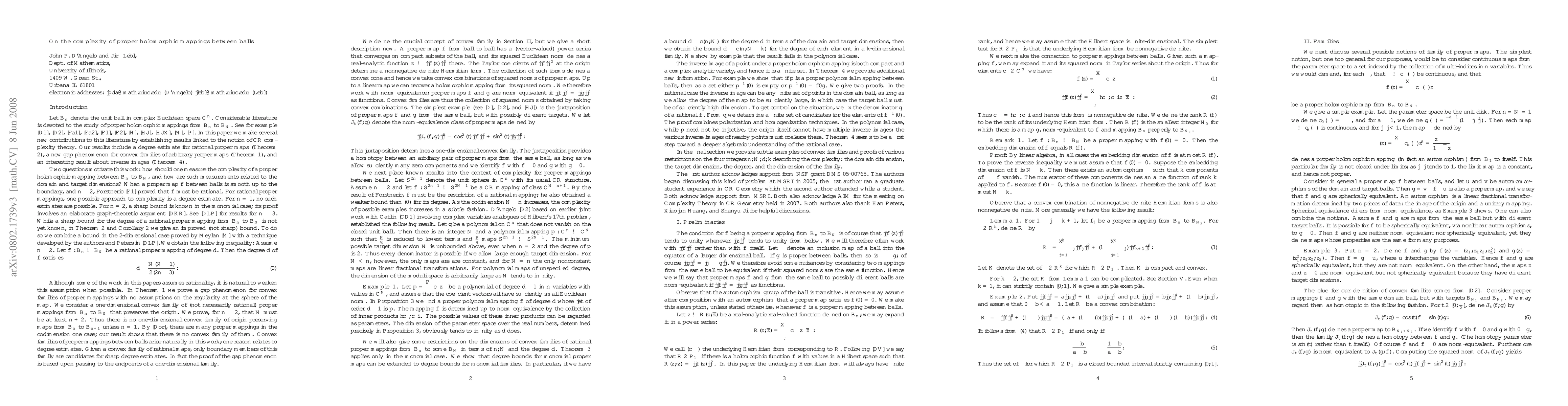 Summary: This research introduces novel findings on proper holomorphic mappings between balls, including a degree estimate for rational proper maps, a gap phenomenon for convex families of proper maps, and an intriguing result concerning inverse images.